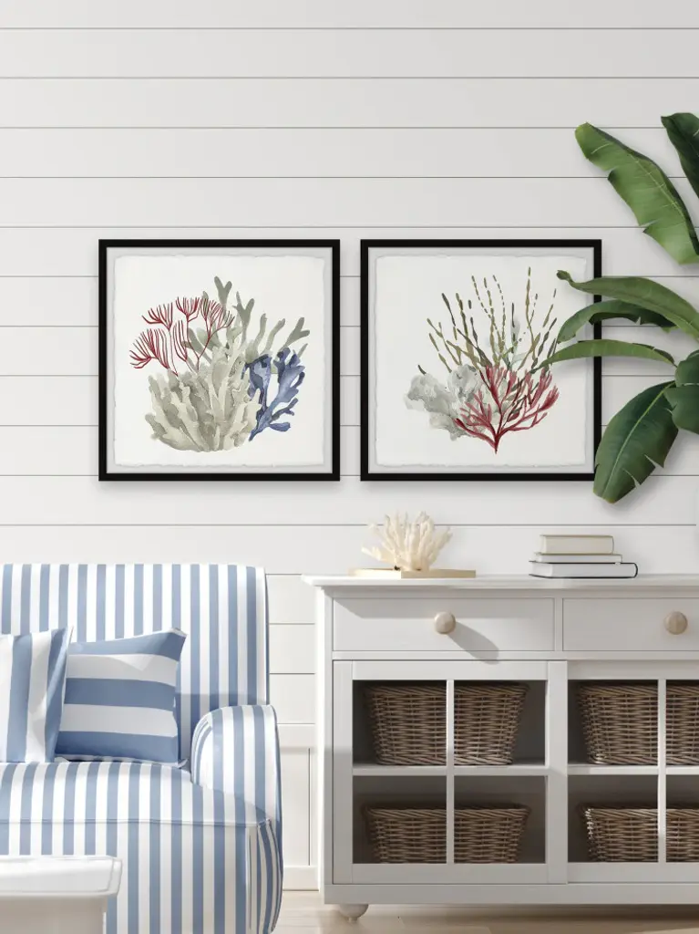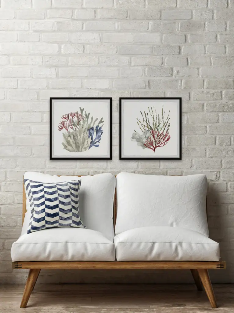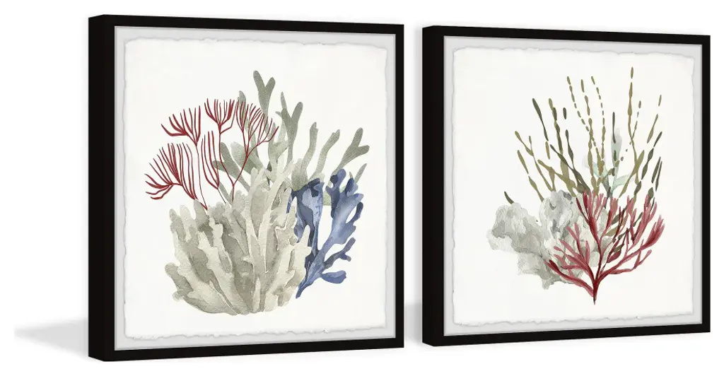 These two watercolor painting prints are perfect for any room in the house, each featuring various colorful coral pieces that intertwine with one another. Proudly printed in the USA, this piece is printed on high quality archive paper and professionally hand-framed. With wall-mounting hooks included, this artful accent is ready to hang up as soon as it reaches your front door.- (2) panels of 12x12- Top quality Giclee print on high resolution Archive Paper- Hand cut deckled edges- High quality durable non-warping frame- Finished under shatter resistant plexiglass- Arrives ready to hang- Includes a certificate of authenticity- Printed in the USA