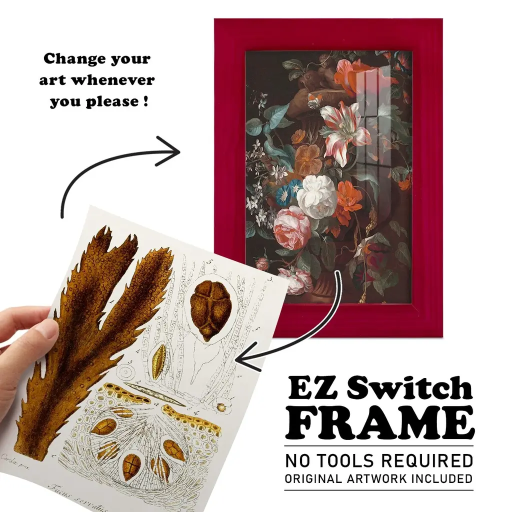 Seaweed Illustration II -EZ SWITCH Framed Print w/glass-Cherry Red A delightful, framed print. Featuring a solid wood frame with real wood glass. This premium print is giclee quality. In addition, every frame features a removable back and table top stand. This allows you to change your art in the future or to just stand the art on a table for a new look. We are sure you'll enjoy our new series of EZ SWITCH Framed Art. Solid Wood Frame Real Glass Removable / Replaceable Art Built in Tabletop Stand Sizes range from 4x6 up to 12x15 - buy just one or pair them up as sets as you see fit.