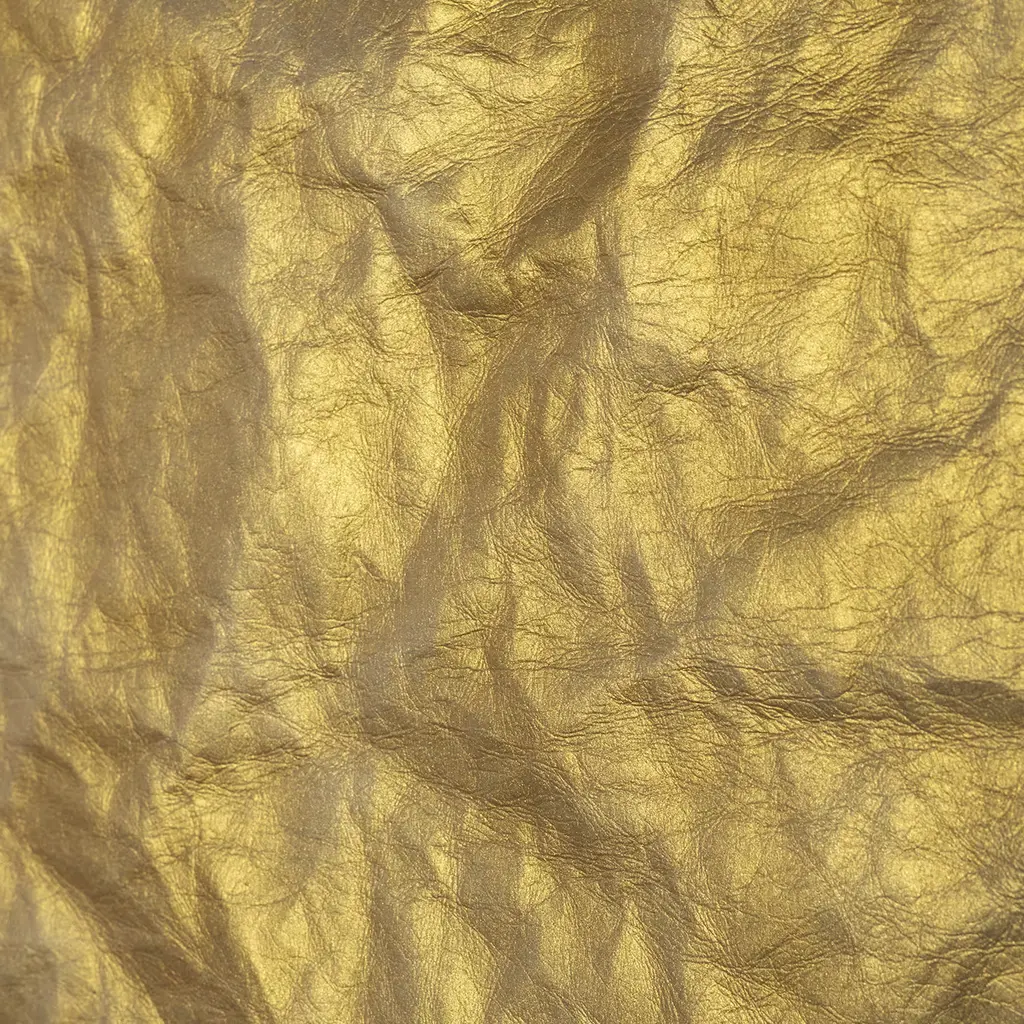 Concepts of identity and regeneration inspired the theme of a "second skin" this precious artwork represents. Fashioned of a layer of vegetable-fiber cloth paper, it boasts a deliberately crumpled design generously decorated in golden tones for a luminous and shimmering effect sure to capture the eye. Please contact the Concierge for color variants and different size options.