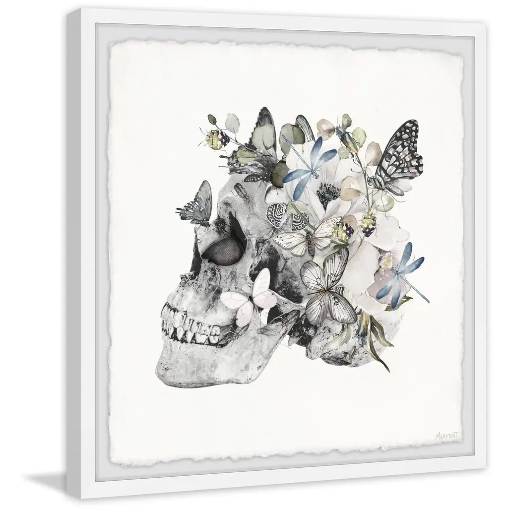 Step up your wall art game with this unique watercolor painting print that features a skull that is contrasted by pastel flowers and butterflies. Proudly printed in the USA, this piece is printed on high quality archive paper and professionally hand-framed. With wall-mounting hooks included, this artful accent is ready to hang up as soon as it reaches your front door. • Top quality Giclee print on high resolution Archive Paper • Hand cut deckled edges • High quality durable non-warping frame • Finished under shatter resistant plexiglass • Arrives ready to hang • Includes a certificate of authenticity • Printed the USA