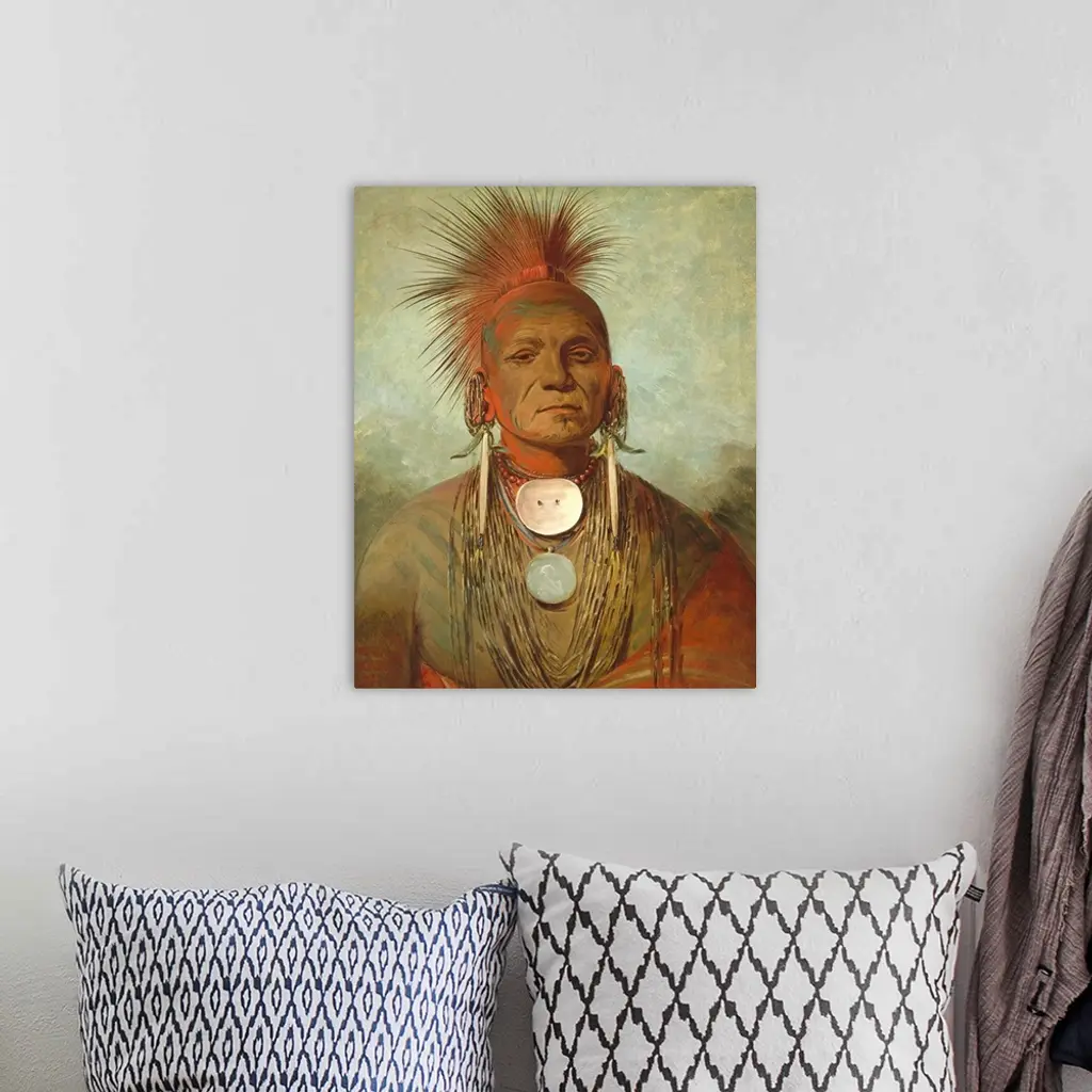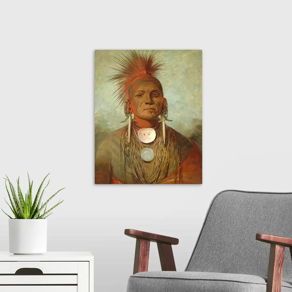 See-non-ty-a, an Iowya Medicine Man, by George Catlin, 1844-45, American painting, oil on canvas. This portrait was made in London, where See-non-ty-a and 13 other Ioways traveled with white missionaries in 1844 performing native dances and demonstrating