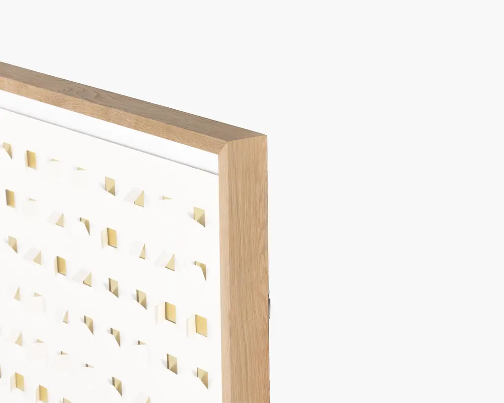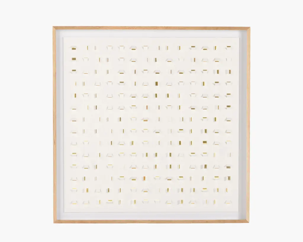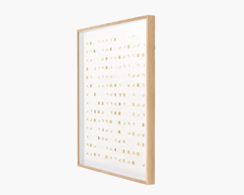 Paper cutouts add layers of color and texture to this piece and any space. Mounting hardware is included with detailed instructions. Size shown is print size, add frame thickness to print size for total frame size Weight: 30 lbs Matte Paper Acrylic Glass Receives Threshold delivery