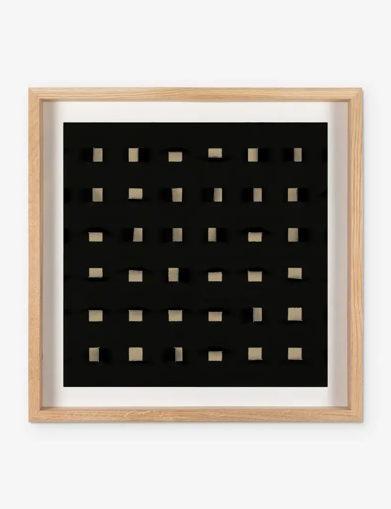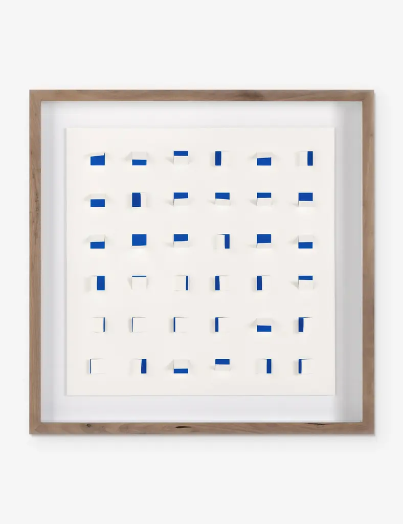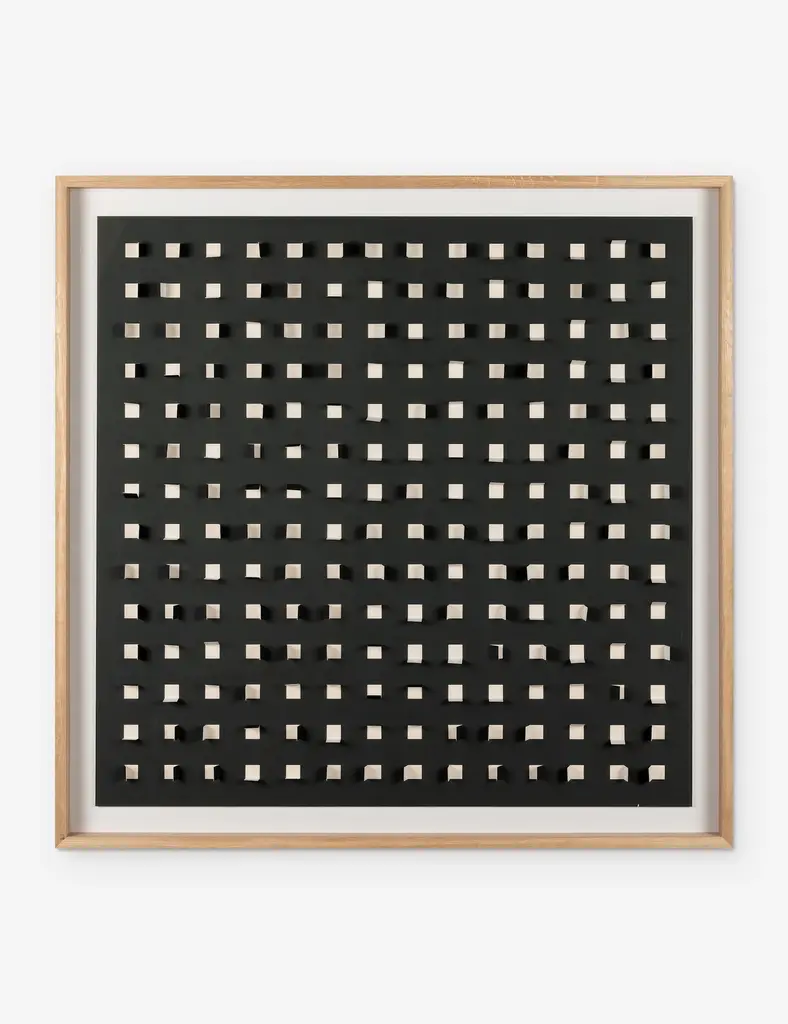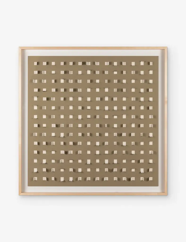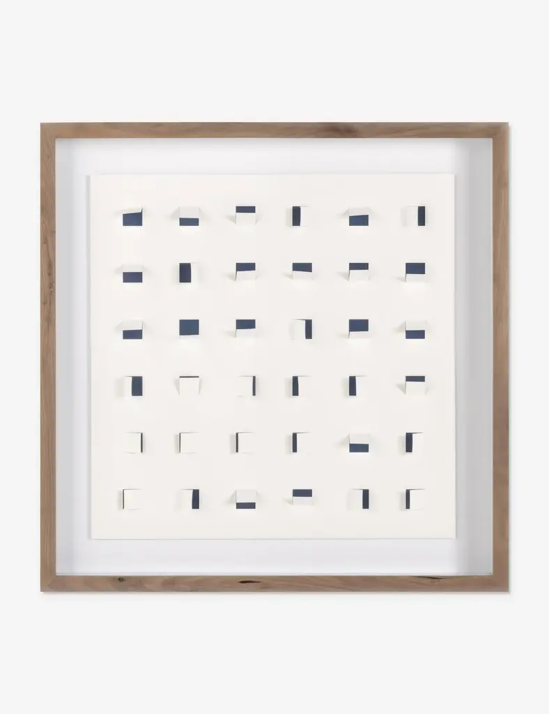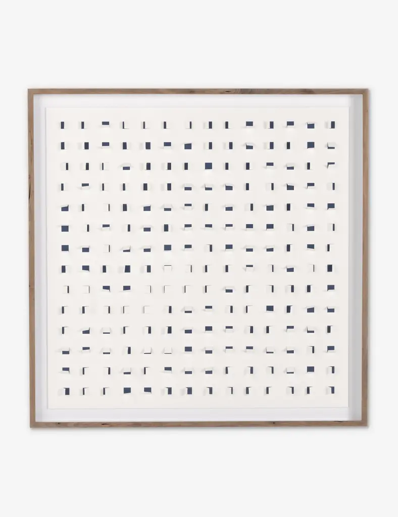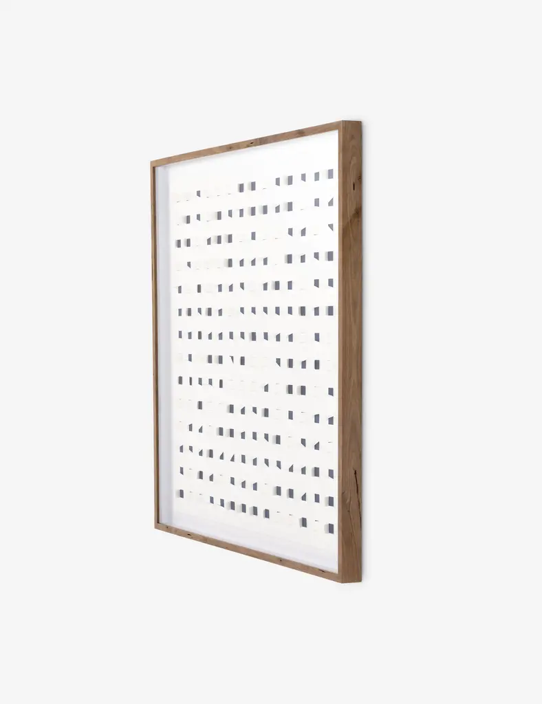 Add a touch of depth to your space with this mixed-media wall art. Paper cutouts on a linen backdrop create a striking textural array for a modern edge in your wall decor. The offset flaps give the orderly rows a sense of fluttering movement, setting off this eye-catching piece with balance and poise.