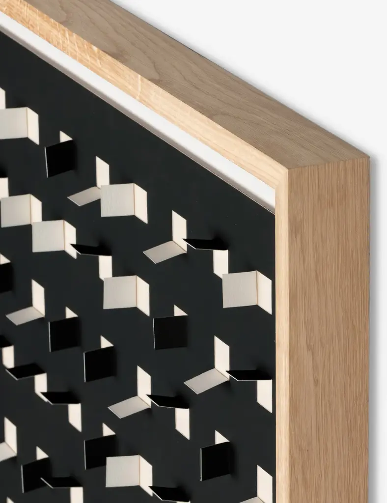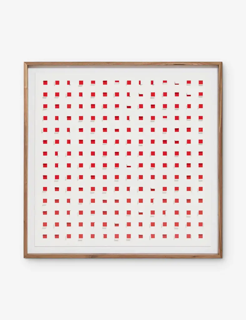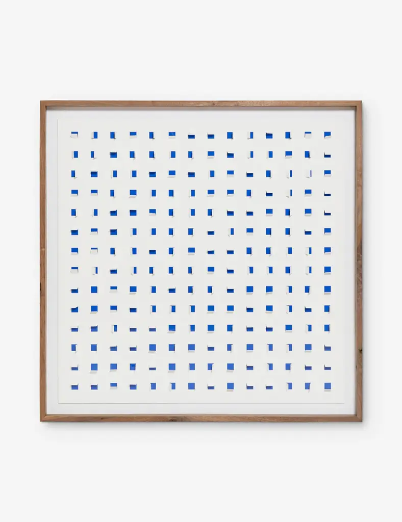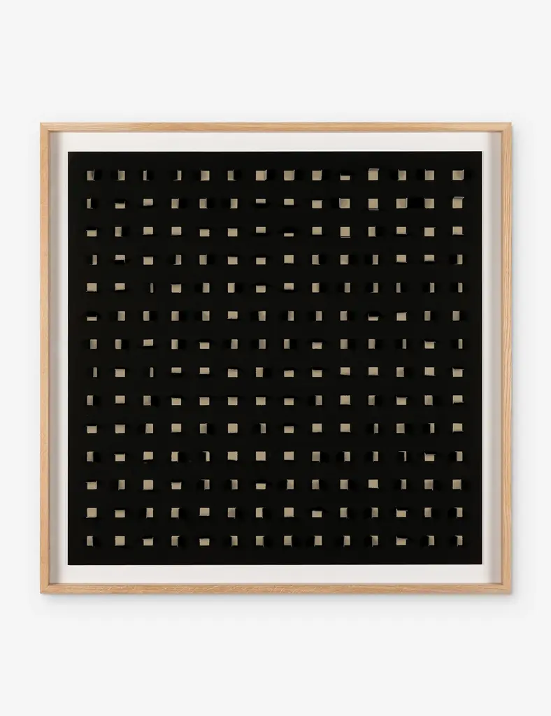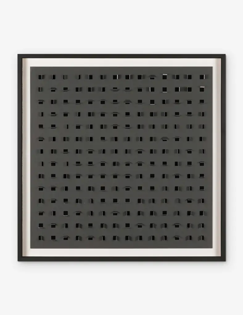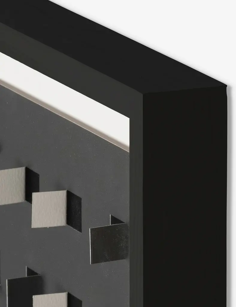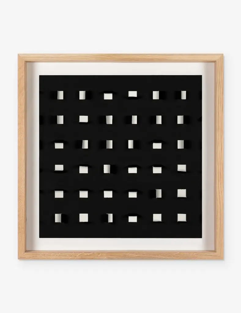 Add a touch of depth to your space with this mixed-media wall art. Paper cutouts on a linen backdrop create a striking textural array for a modern edge in your wall decor. The offset flaps give the orderly rows a sense of fluttering movement, setting off this eye-catching piece with balance and poise.