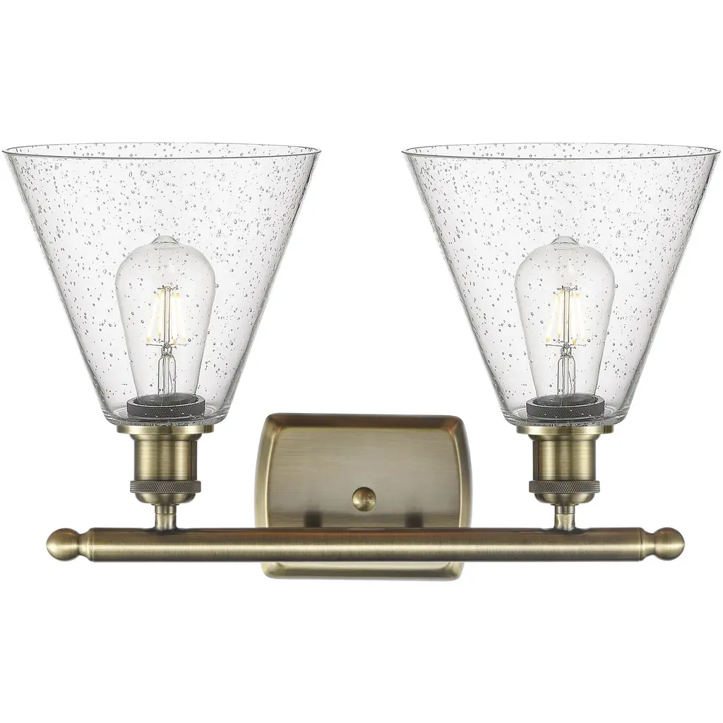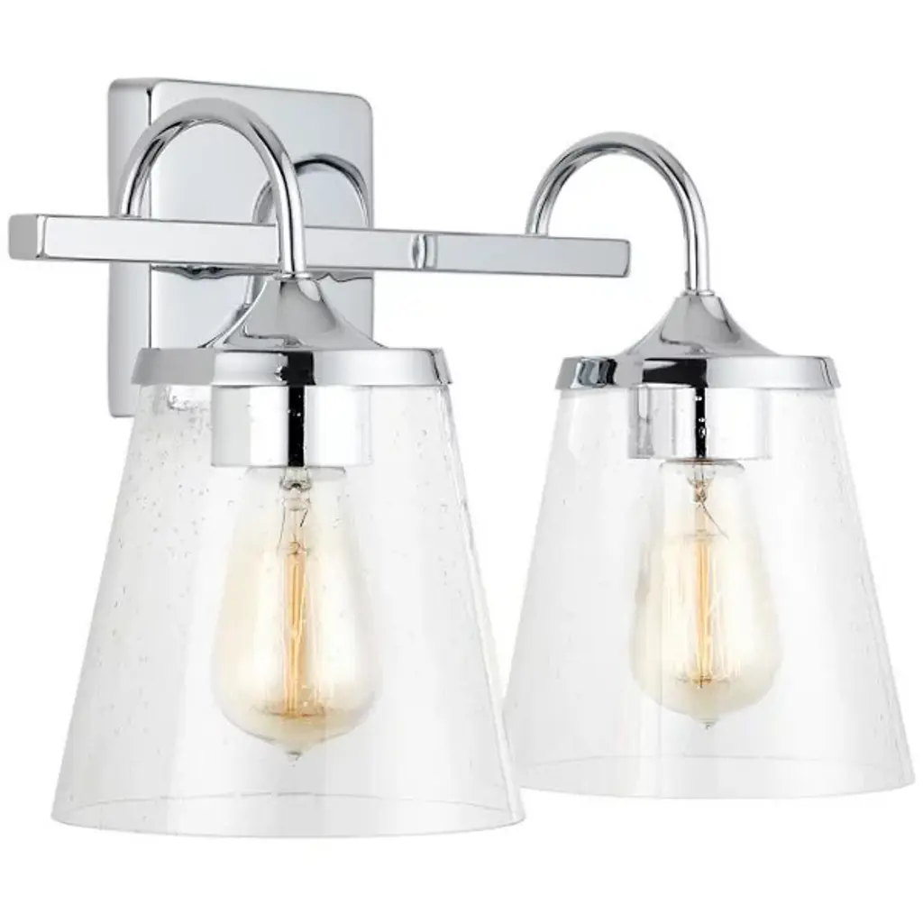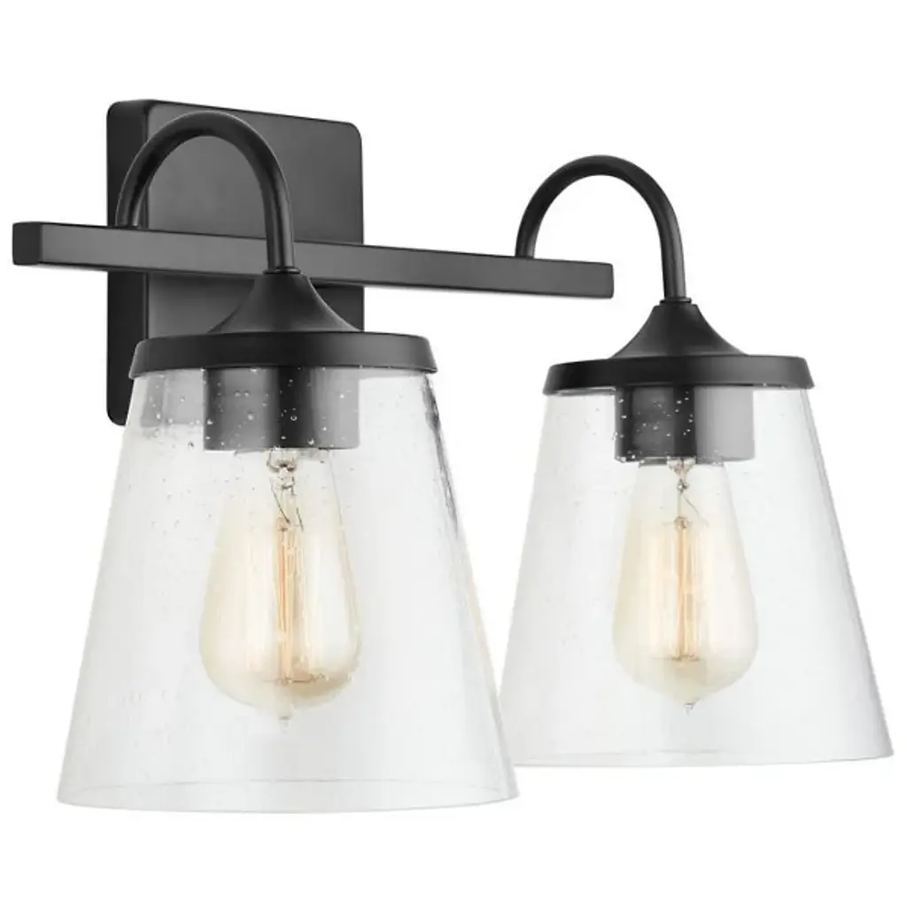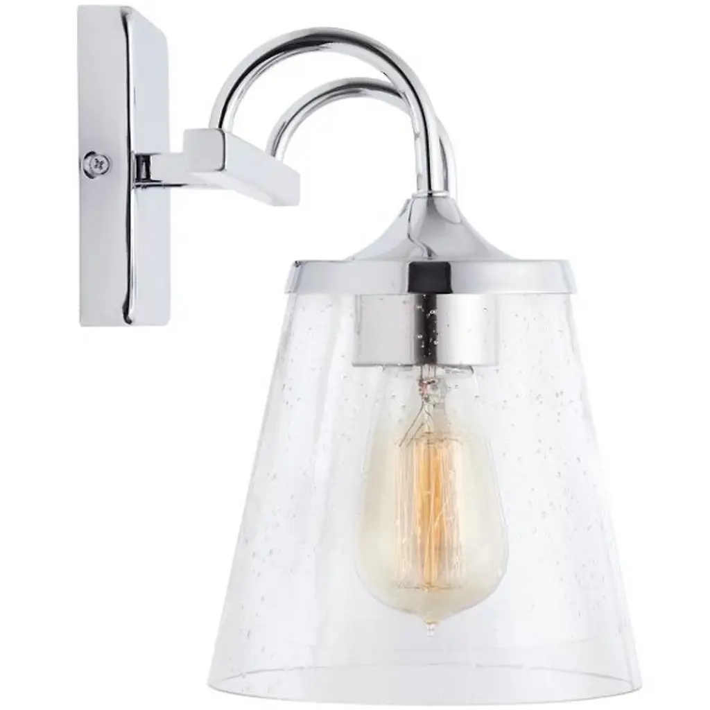 The Seeded Glass Bell Vanity Light by Capital Lighting has a tailored, elegant look. Anchored by a sleek, square backplate, a horizontal bar supports an evenly spaced arrangement of conical-shaped glass shades held by gracefully curved arms. Softly flared metal tops cap each glass shade and a visible bulb within filters through the textured surface around them to create a warm and welcoming environment. Simple yet striking, this bath bar adds an elevated touch to master and guest bathrooms alike.