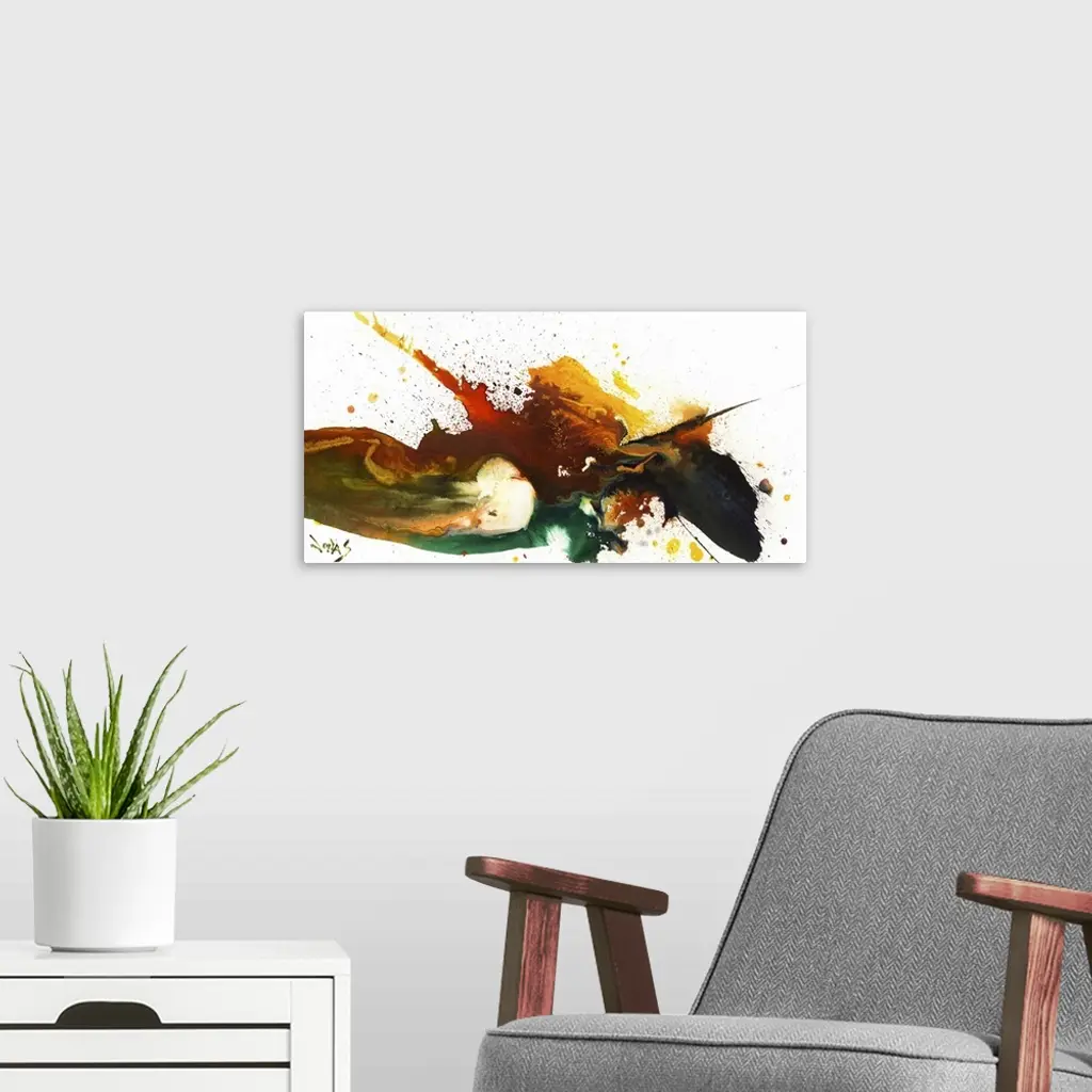 Contemporary abstract painting using wild and vivid colors to create movement and depth.