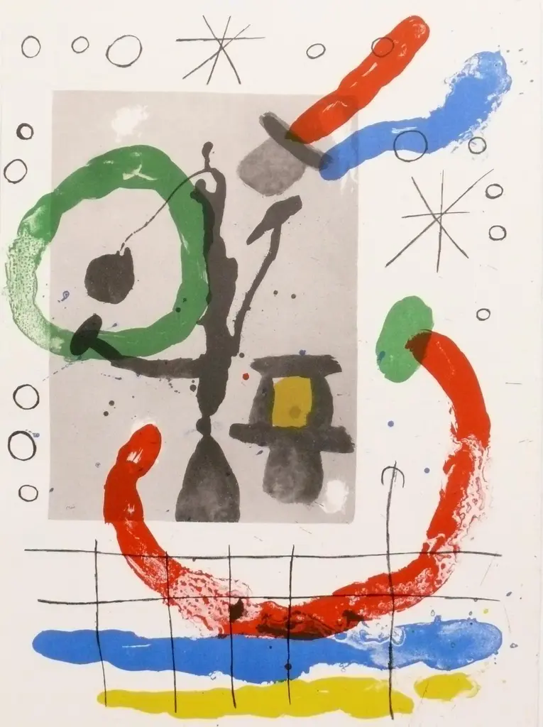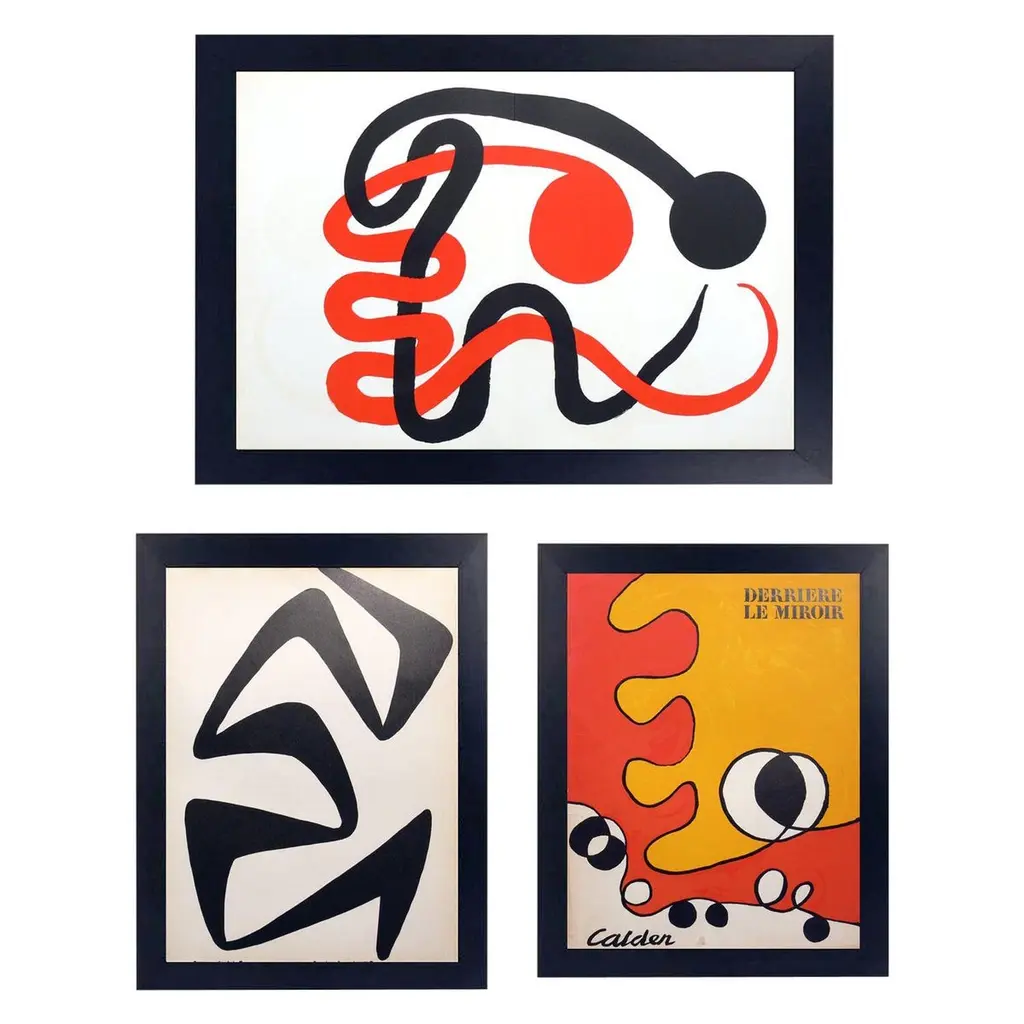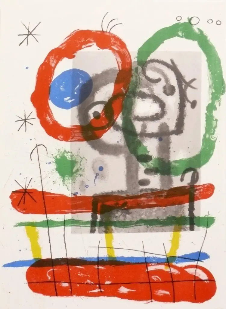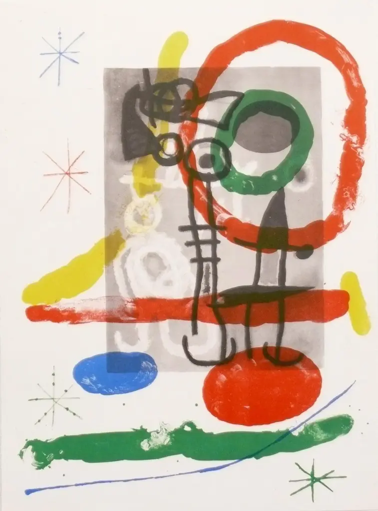 Selection of Joan Miro color lithographs, French, circa 1960s. They are from the limited edition folio “Derriere le Miroir”, published by the legendary Galerie Maeght, circa 1960s. Please see our other 1stdibs listings for more Joan Miro works from the same estate. They have been recently framed in clean lined black lacquered wood gallery frames under UV resistant glass. They are priced at $650 each.