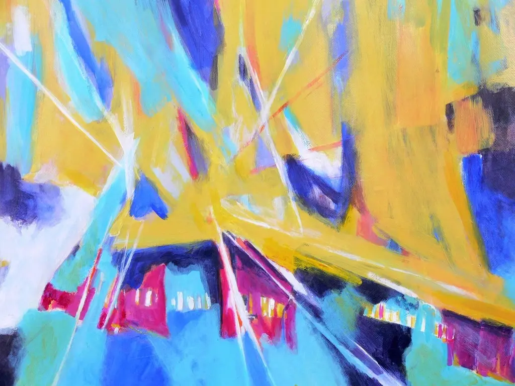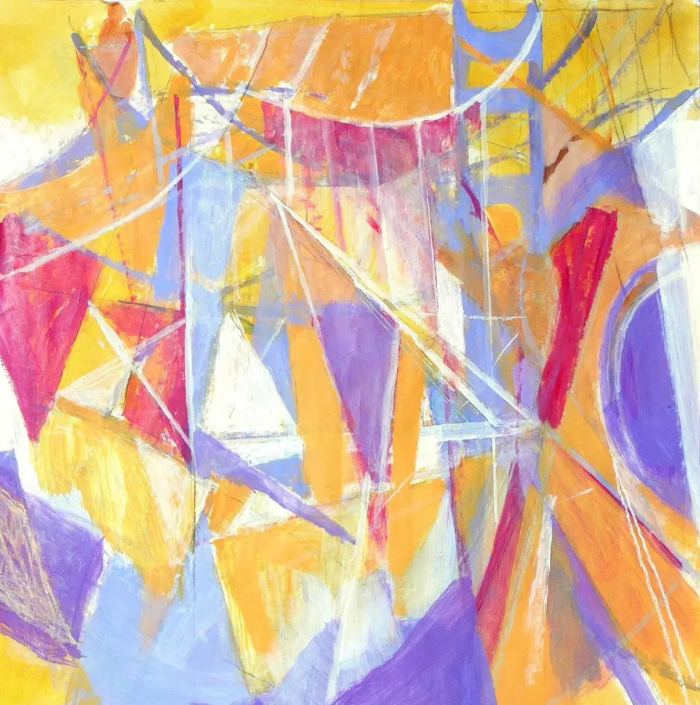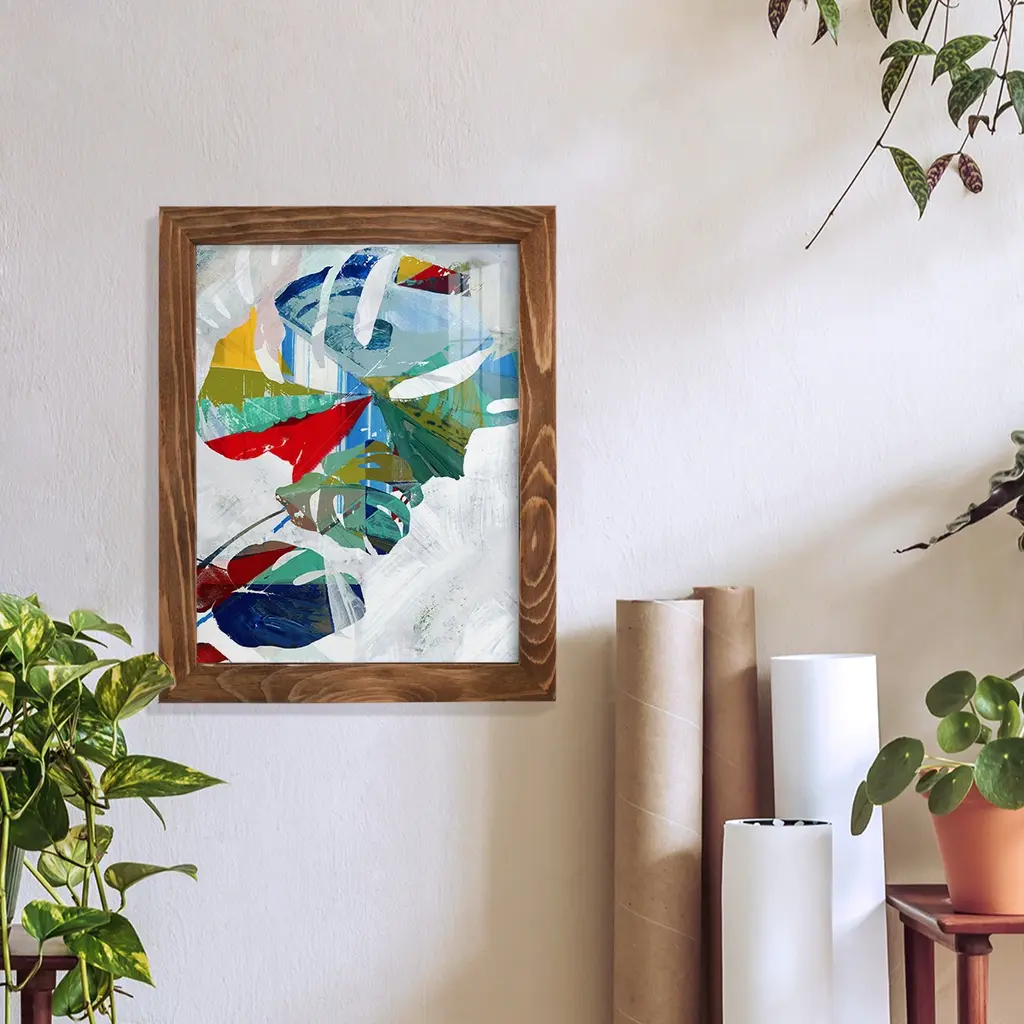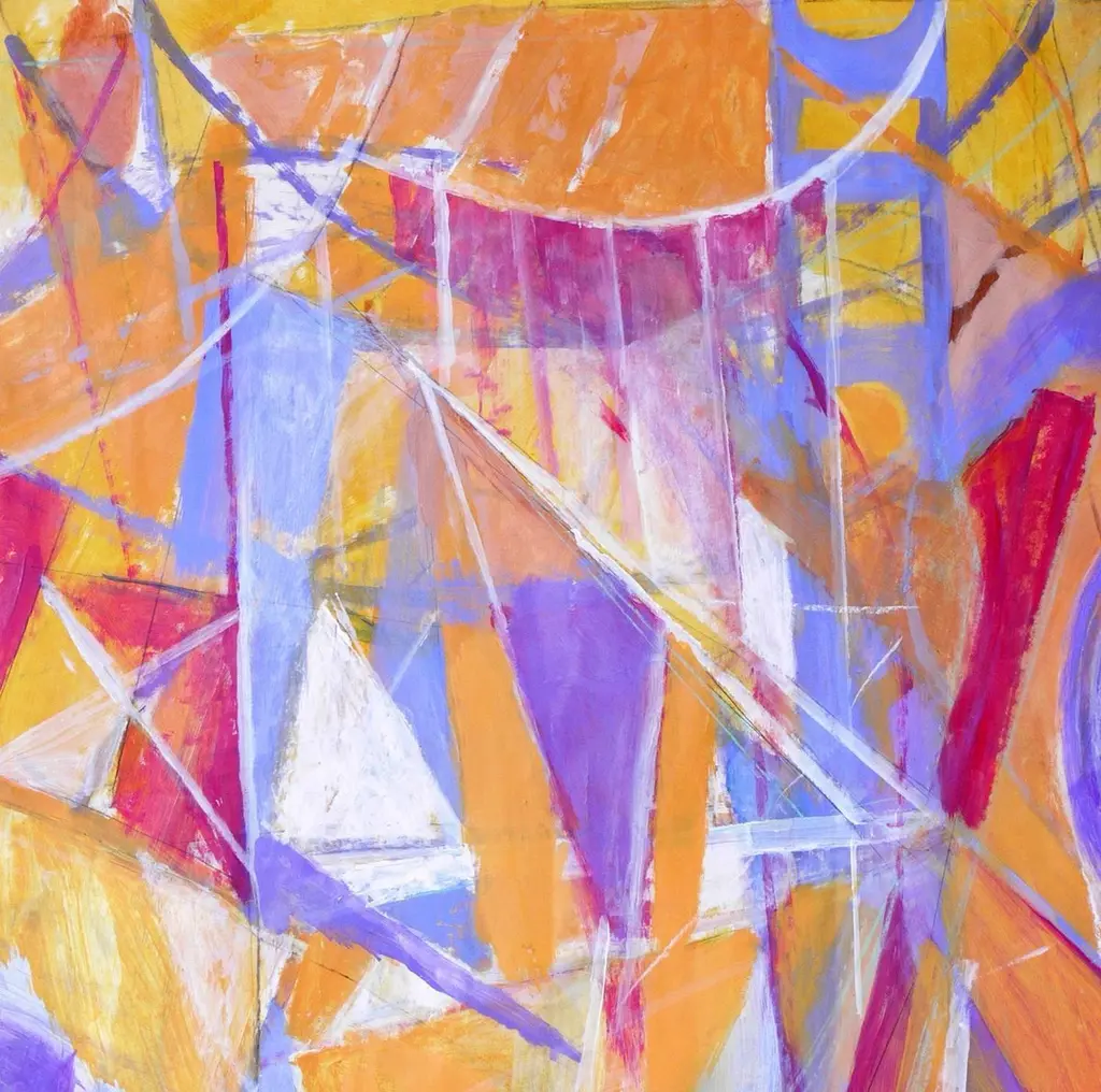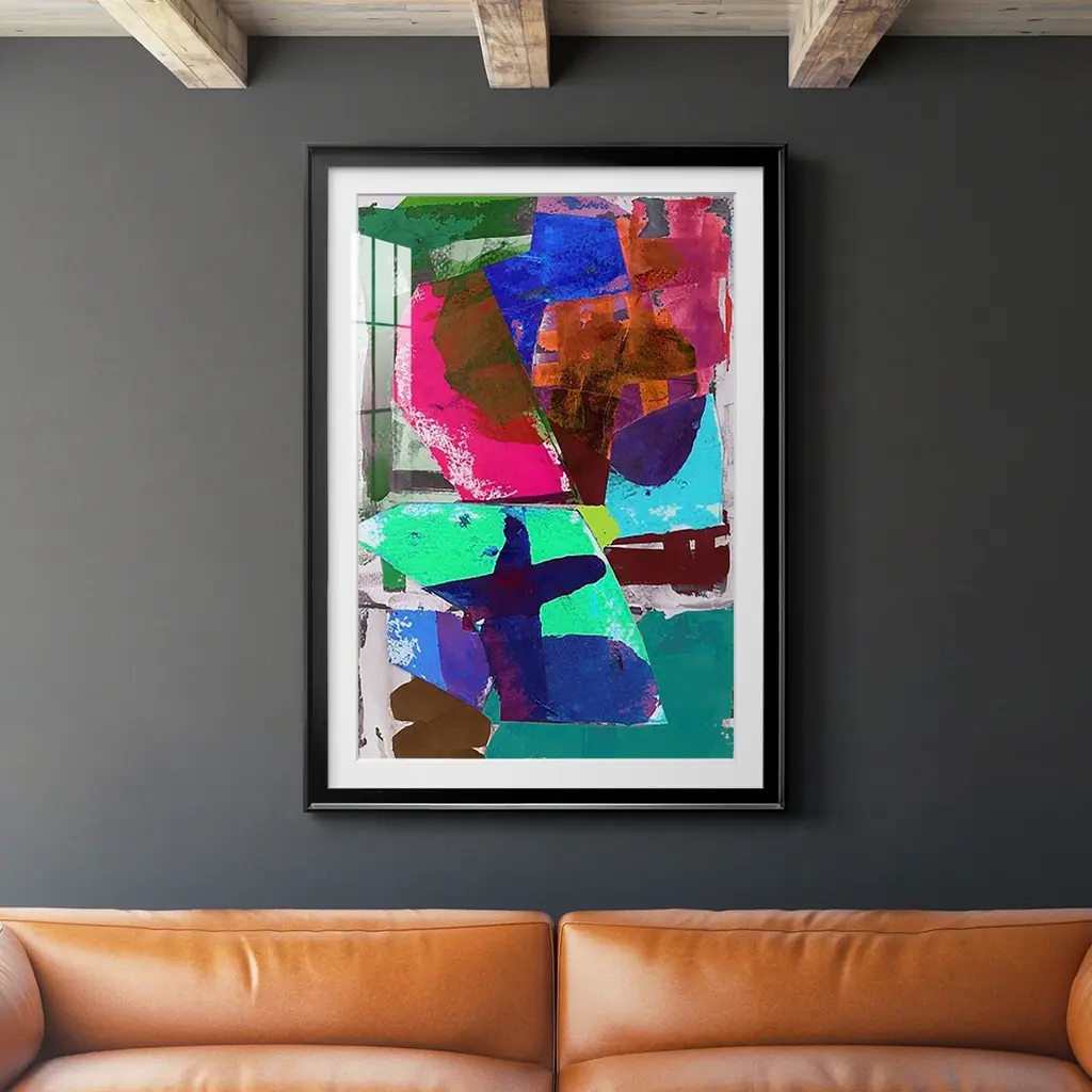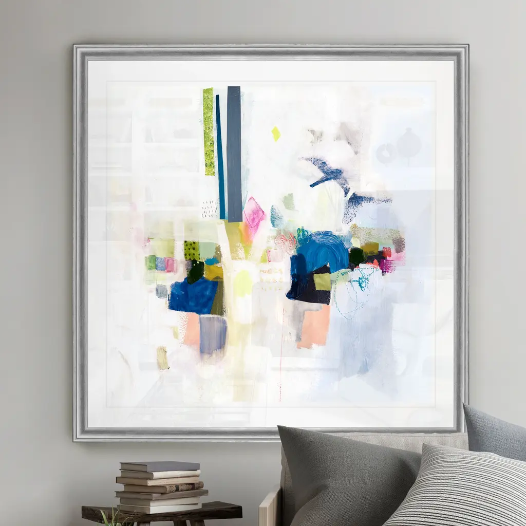 Selection of large-scale abstract paintings, artist unknown, probably American, circa 1960s. They have been framed in clean lined white lacquered gallery frames under UV resistant glass. Group #2.