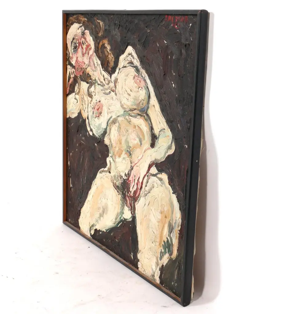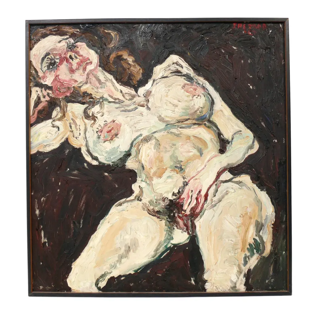 Selection of large scale nude female oil paintings by Philip Sherrod, American, circa 1960s. Great thick impasto technique.From left to right, as seen in the first photo, they measure:1) 33"H x 26.5"W.2) 35"H x 26.5"W.3) 32"H x 31"W. They are priced at $1500 each.