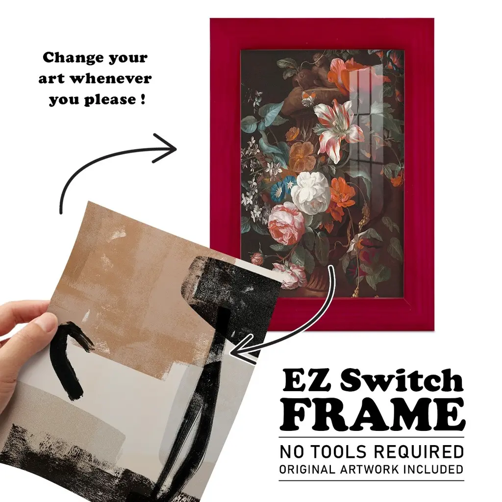 Selective Arrangement III -EZ SWITCH Framed Print w/glass-Cherry Red A delightful, framed print. Featuring a solid wood frame with real wood glass. This premium print is giclee quality. In addition, every frame features a removable back and table top stand. This allows you to change your art in the future or to just stand the art on a table for a new look. We are sure you'll enjoy our new series of EZ SWITCH Framed Art. Solid Wood Frame Real Glass Removable / Replaceable Art Built in Tabletop Stand Sizes range from 4x6 up to 12x15 - buy just one or pair them up as sets as you see fit.