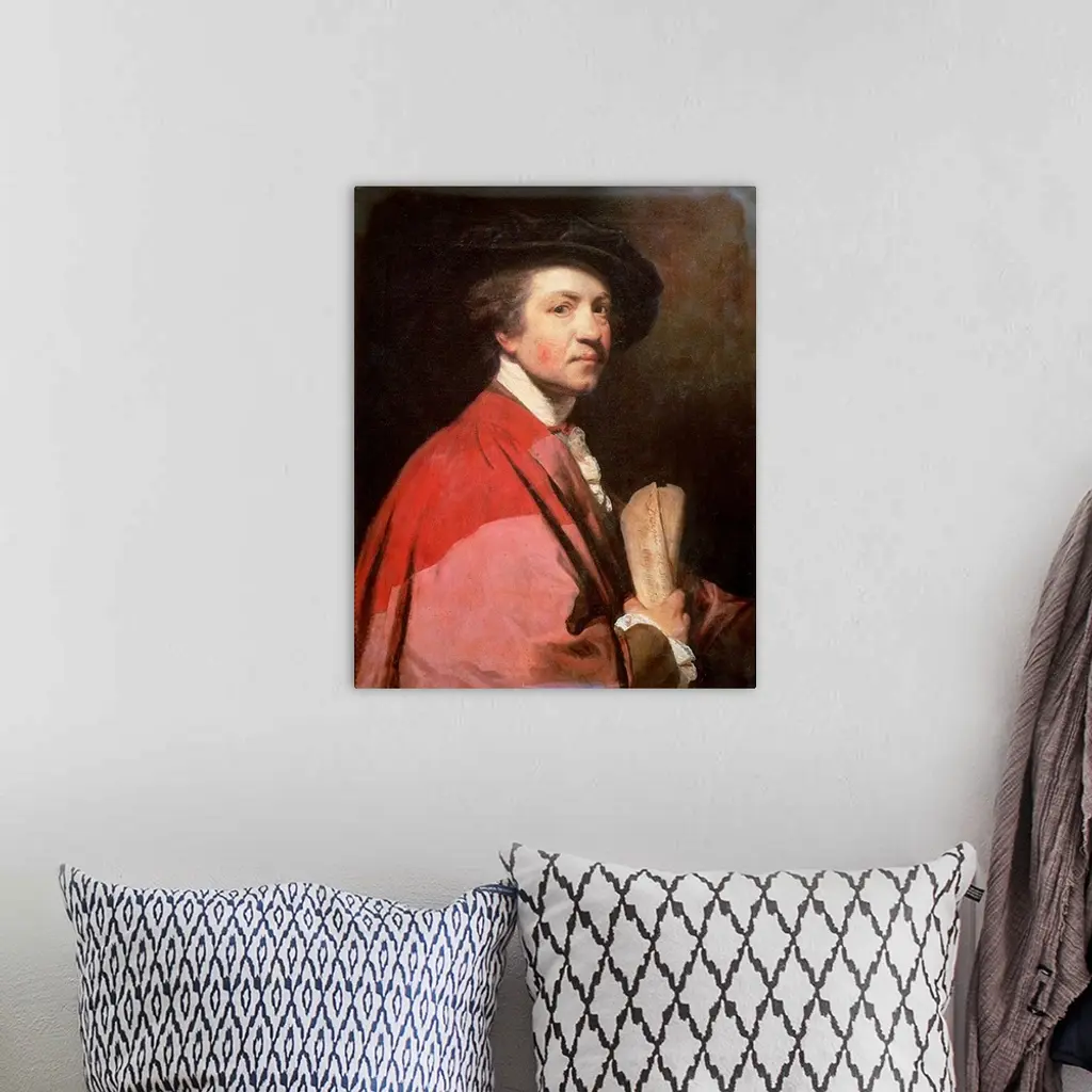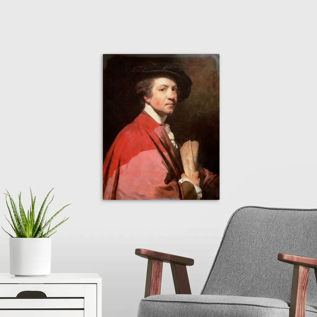 XIR50051 Self Portrait, 1775 (oil on canvas) by Reynolds, Sir Joshua (1723-92); 71.5X58 cm; Galleria degli Uffizi, Florence, Italy; (add. info.: wearing robes of Oxford Doctor of Civil Law; president of Royal Academy of Arts); Giraudon; English, out of copyright