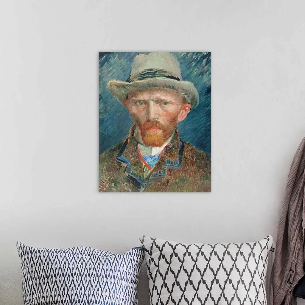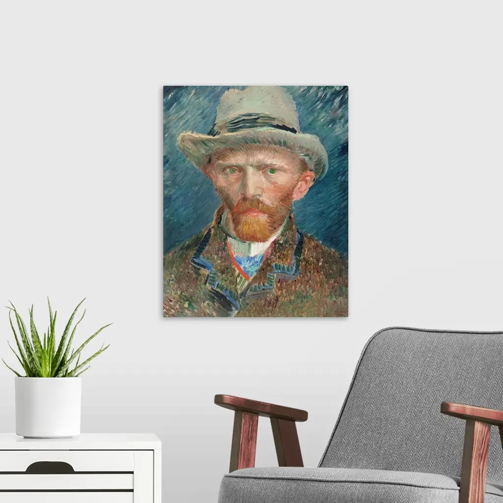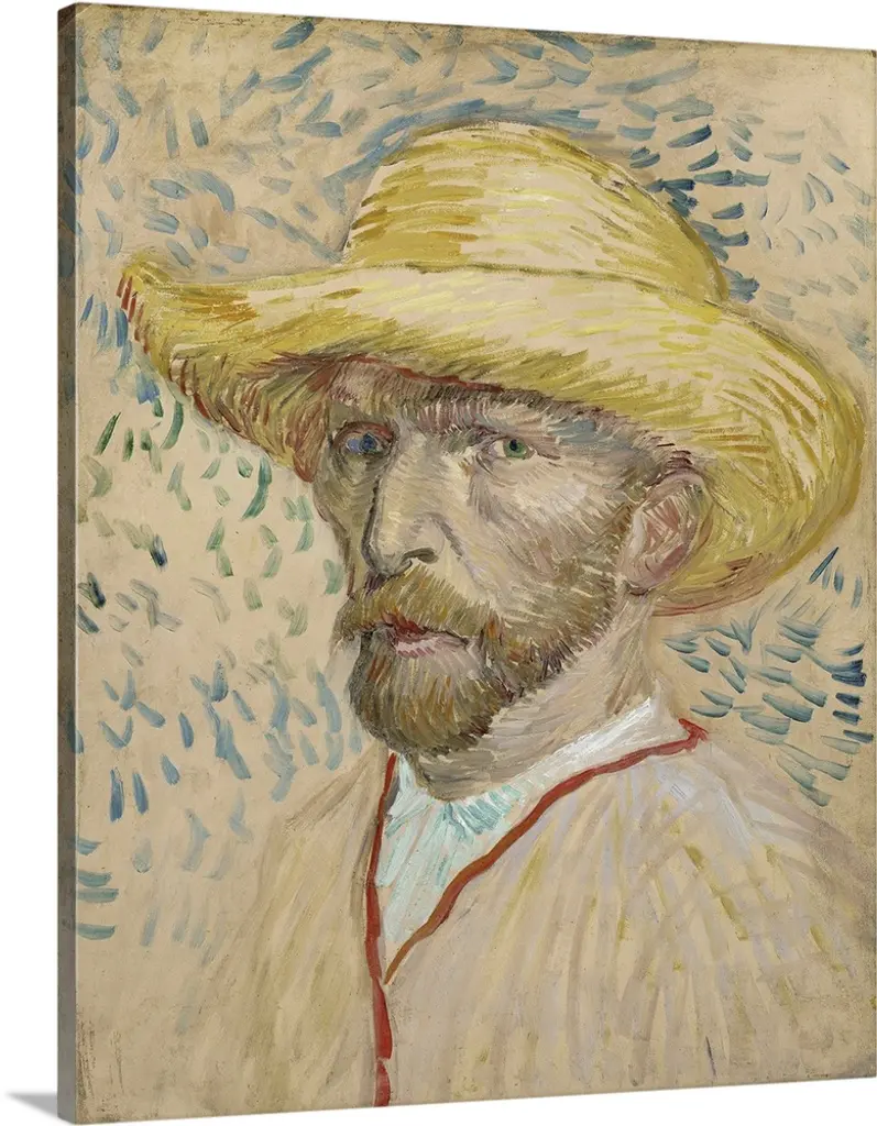 Self portrait of Vincent Van Gogh wearing a hat.
