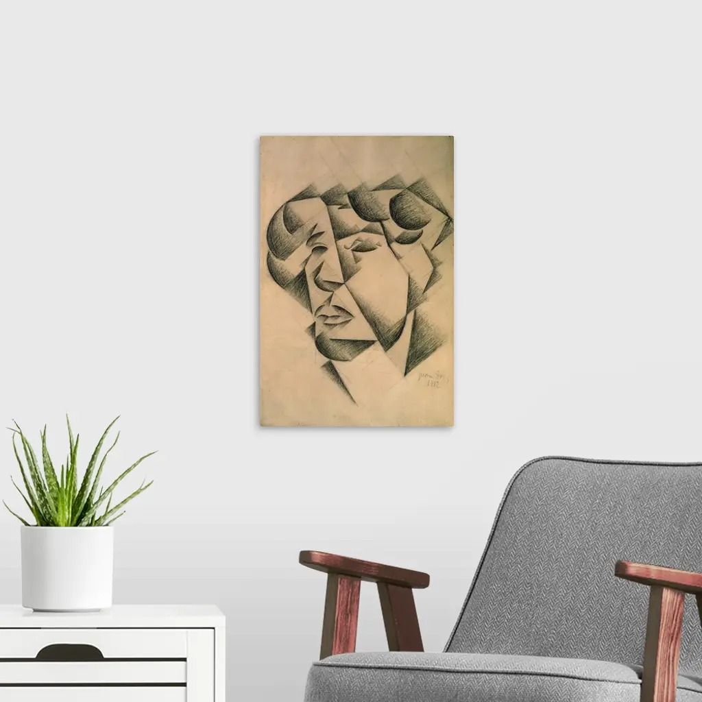 LEF222153 Self Portrait, 1912 (charcoal on paper) by Gris, Juan (1887-1927); 44.5x29 cm; Private Collection; Photo .... Lefevre Fine Art Ltd., London; Spanish, out of copyright