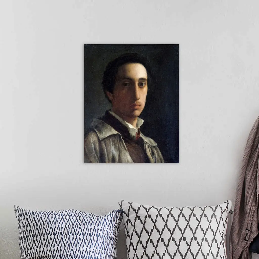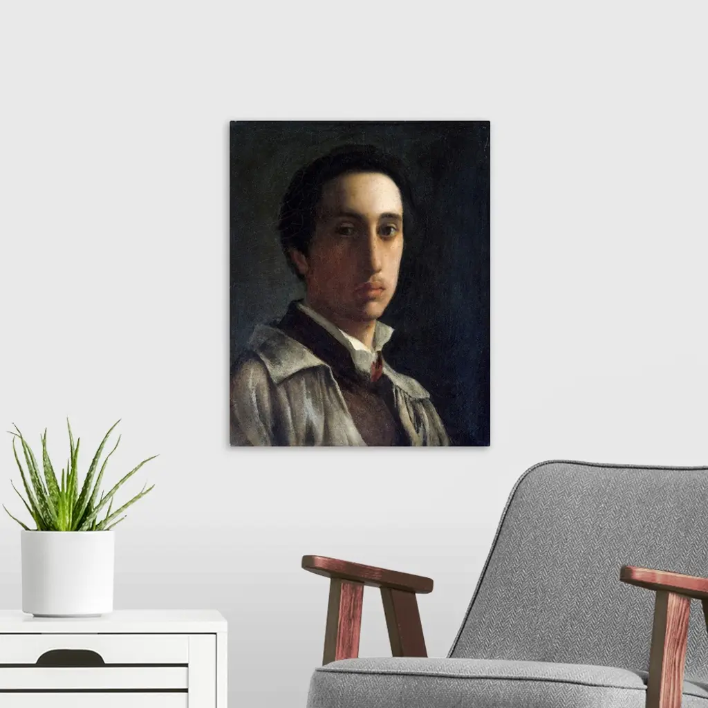 At the start of his career, Degas produced some forty self-portraits in various media. This likeness dates to about 1855-56, when the young artist quit his formal training at the Ecole des Beaux-Arts and set off for an extended sojourn in Italy. It reflects Degas's awareness of the self-portraiture of Rembrandt, Ingres, and Delacroix.