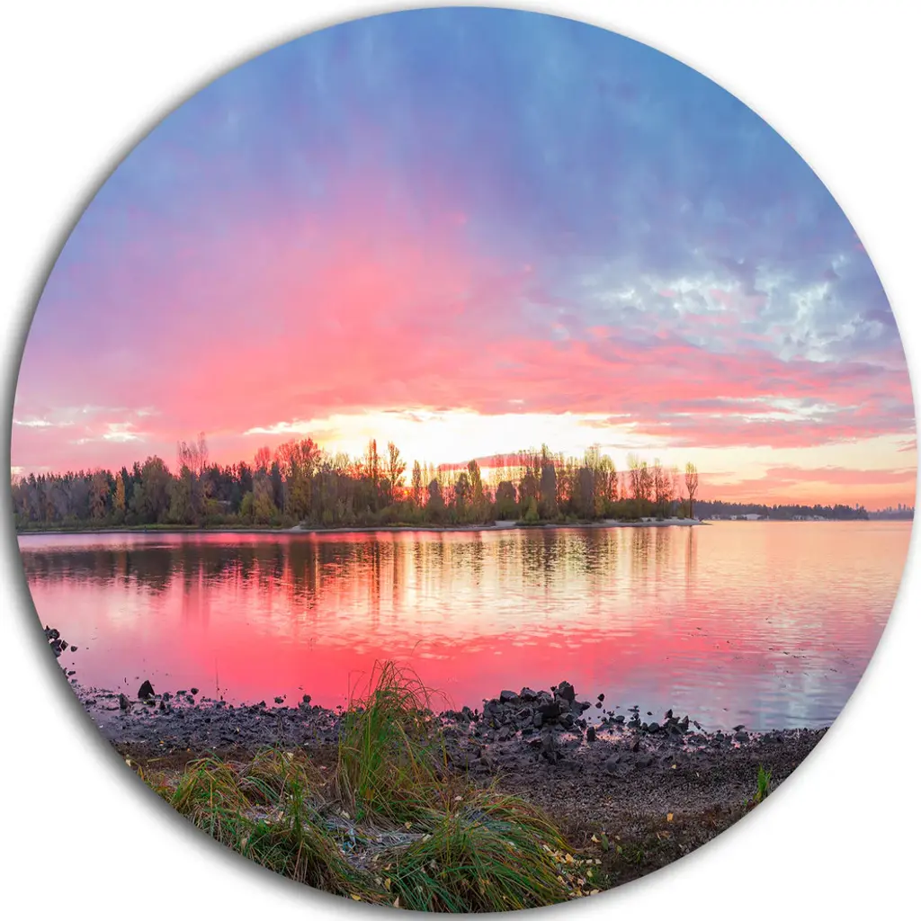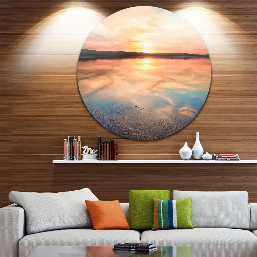 Bring Contemporary Abstraction to your home with this large Circle Metal wall art. This Sensational Sunset in Australia Metal Artwork makes it the focal point of any room or office. - White Gloss Coating ensures colors are extra vibrant with light reflection.- Aluminum grade Sheet Metal with 1 inch mounting frame on the back giving the illusion that the artwork is floating on the wall..- Mounting Brackets are included along with instructions.- High Quality Digital images are created directly into a glossy aluminum panel producing a stunning and captivating print into the glossy finish of the metal.- Water, Fire and Scratch resistant HD Aluminum panels.- Looks better than any photo paper and guaranteed to last at least 20 years- Easy to clean with a microfiber cloth. Colors are far superior to regular Canvas Art. - Easy to Hang