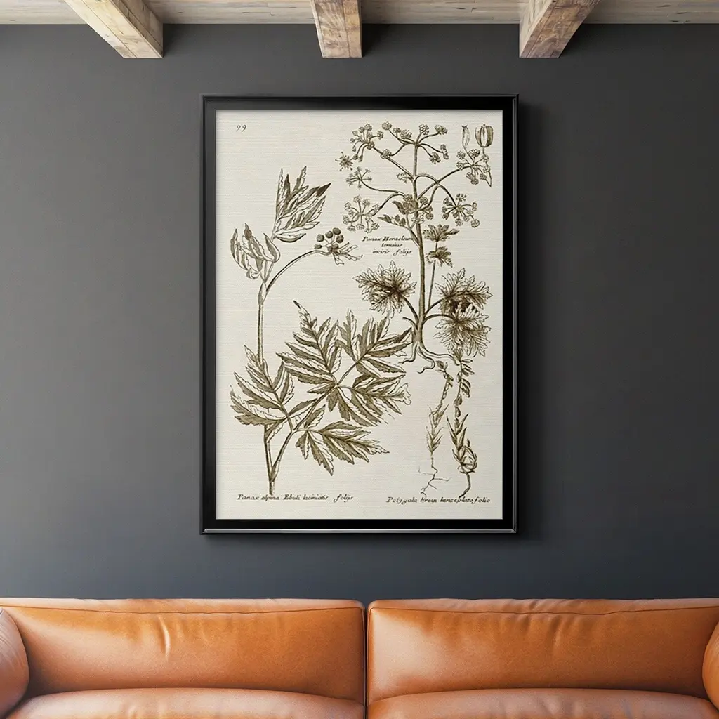 Sepia Botanical Journal III Premium Framed Print - Ready to Hang A Premium Framed Print created to last. Framed in distressed wood and available in an array of sizes and colors Featuring a beveled a solid wood stretcher bar, each piece comes ready to hand 4 SIZES AVAILABLE 30.5''X42.5'' - Overall Size 26.5'X36.5'' - Overall Size 22.5''x30.5'' - Overall Size 18.5''x24.5'' - Overall Size Each piece is made to order. Each piece comes with hanging hardware. Made in the USA Ready to Hang