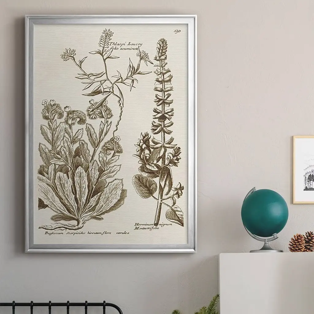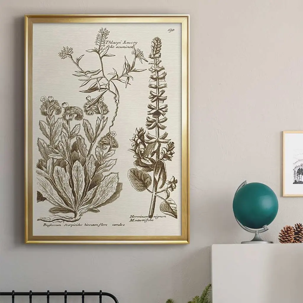 Sepia Botanical Journal IV Premium Framed Print - Ready to Hang A Premium Framed Print created to last. Framed in distressed wood and available in an array of sizes and colors Featuring a beveled a solid wood stretcher bar, each piece comes ready to hand 4 SIZES AVAILABLE 30.5''X42.5'' - Overall Size 26.5'X36.5'' - Overall Size 22.5''x30.5'' - Overall Size 18.5''x24.5'' - Overall Size Each piece is made to order. Each piece comes with hanging hardware. Made in the USA Ready to Hang