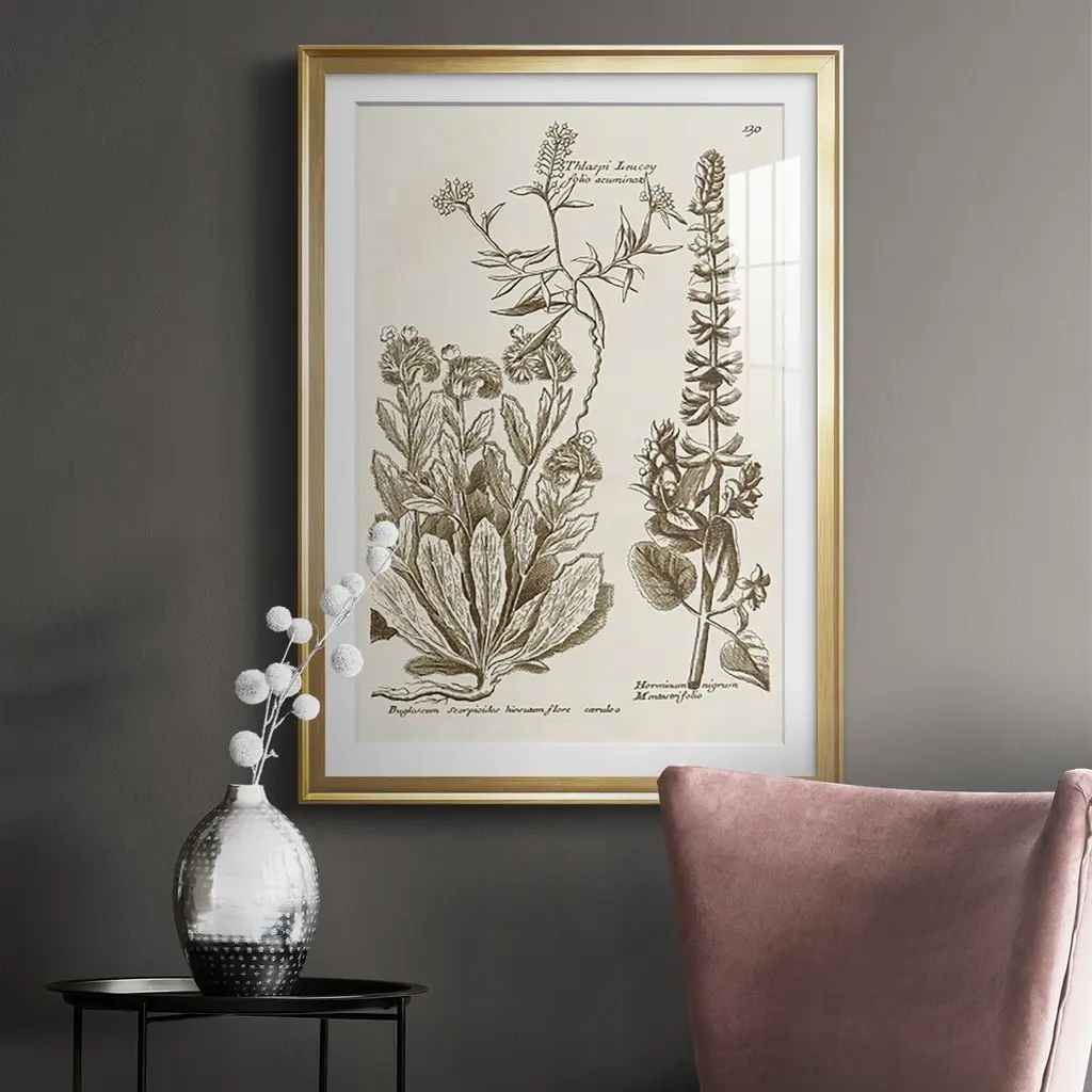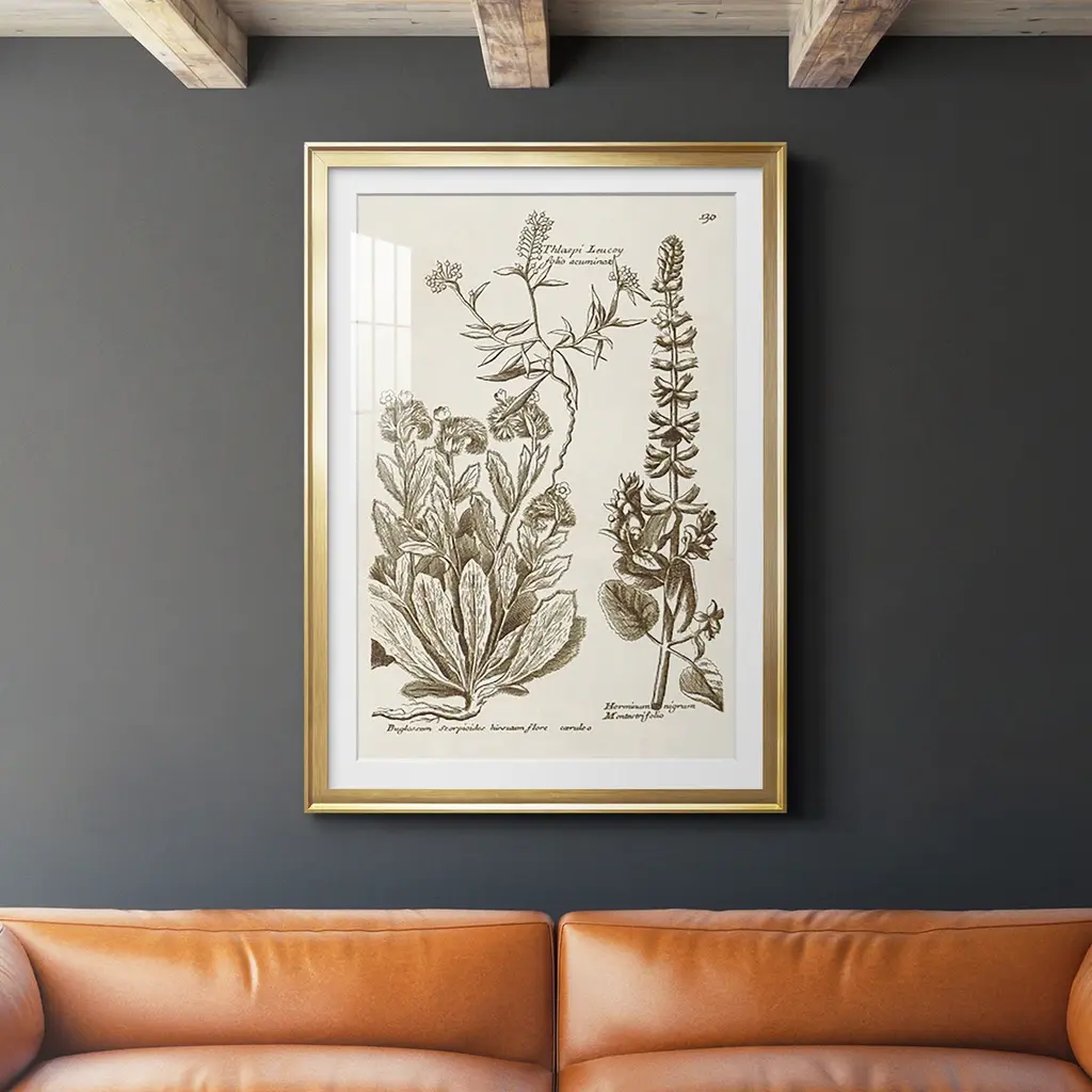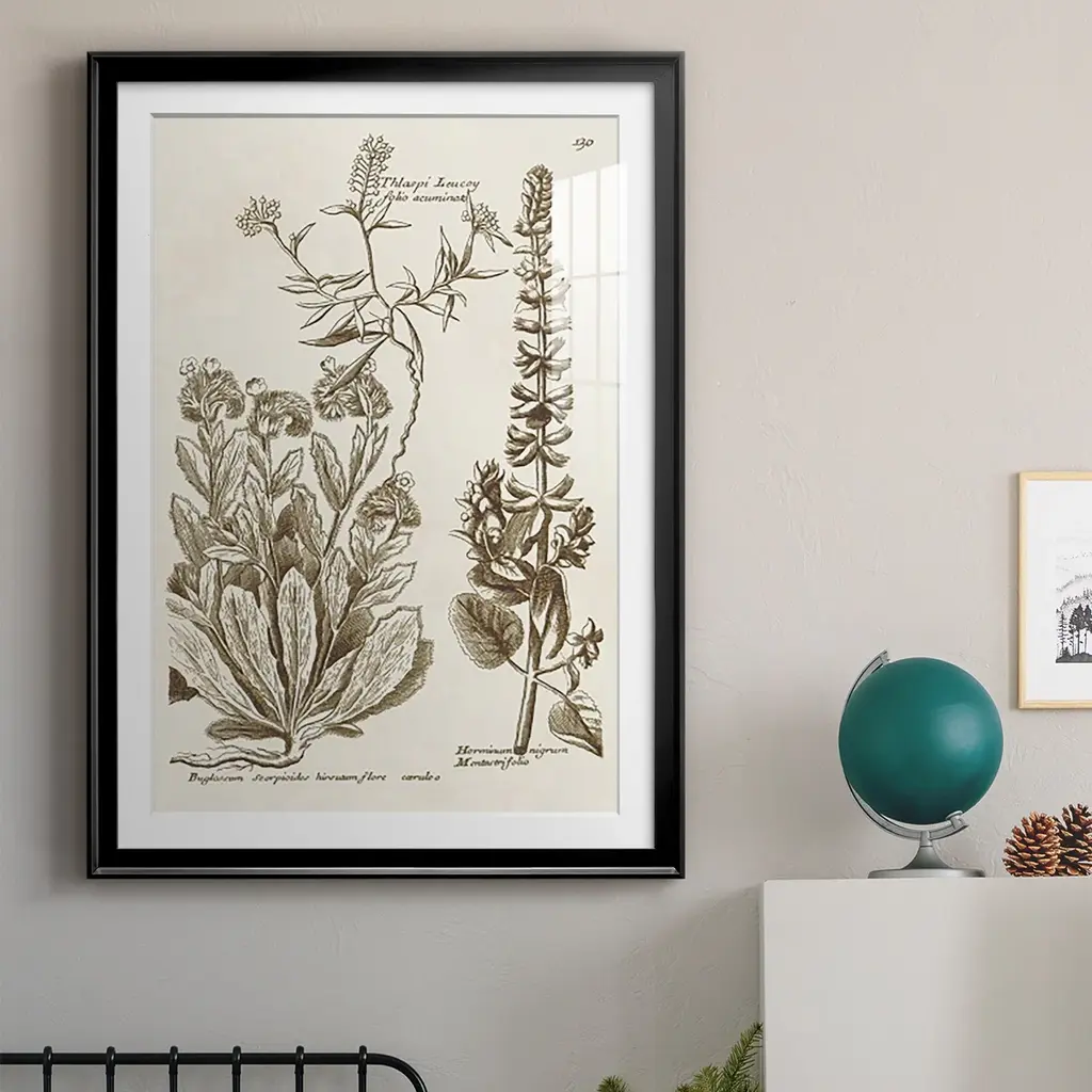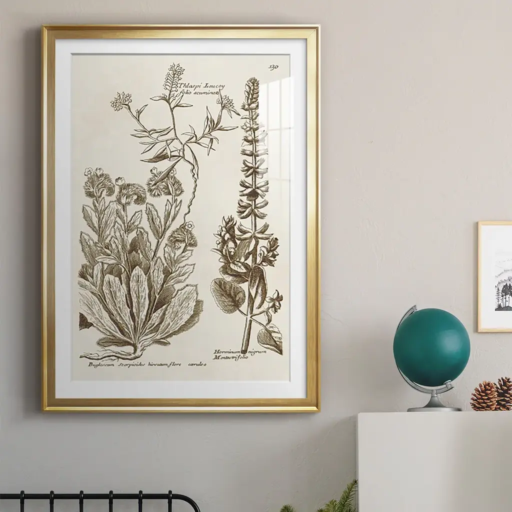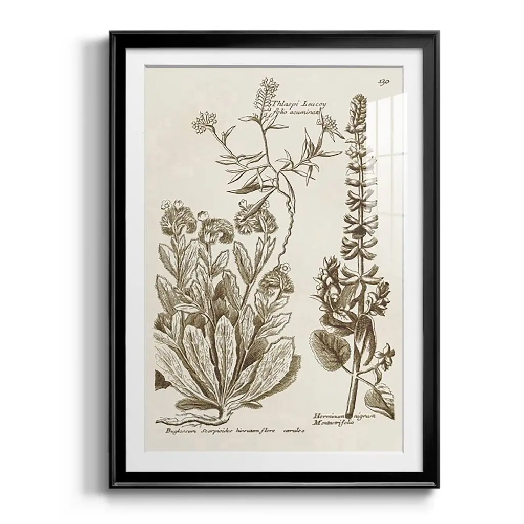 Sepia Botanical Journal IV Premium Framed Print - Ready to Hang A Premium Framed Print created to last. Framed in distressed wood and available in an array of sizes and colors Featuring a beveled a solid wood stretcher bar, each piece comes ready to hand 4 SIZES AVAILABLE 30.5''X42.5'' - Overall Size 26.5'X36.5'' - Overall Size 22.5''x30.5'' - Overall Size 18.5''x24.5'' - Overall Size Each piece is made to order. Each piece comes with hanging hardware. Made in the USA Ready to Hang Giclee Paper Print Acrylic Glass Beveled Matt Board
