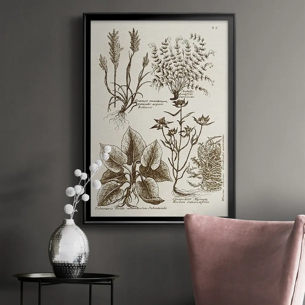 Sepia Botanical Journal VII Premium Framed Print - Ready to Hang A Premium Framed Print created to last. Framed in distressed wood and available in an array of sizes and colors Featuring a beveled a solid wood stretcher bar, each piece comes ready to hand 4 SIZES AVAILABLE 30.5''X42.5'' - Overall Size 26.5'X36.5'' - Overall Size 22.5''x30.5'' - Overall Size 18.5''x24.5'' - Overall Size Each piece is made to order. Each piece comes with hanging hardware. Made in the USA Ready to Hang