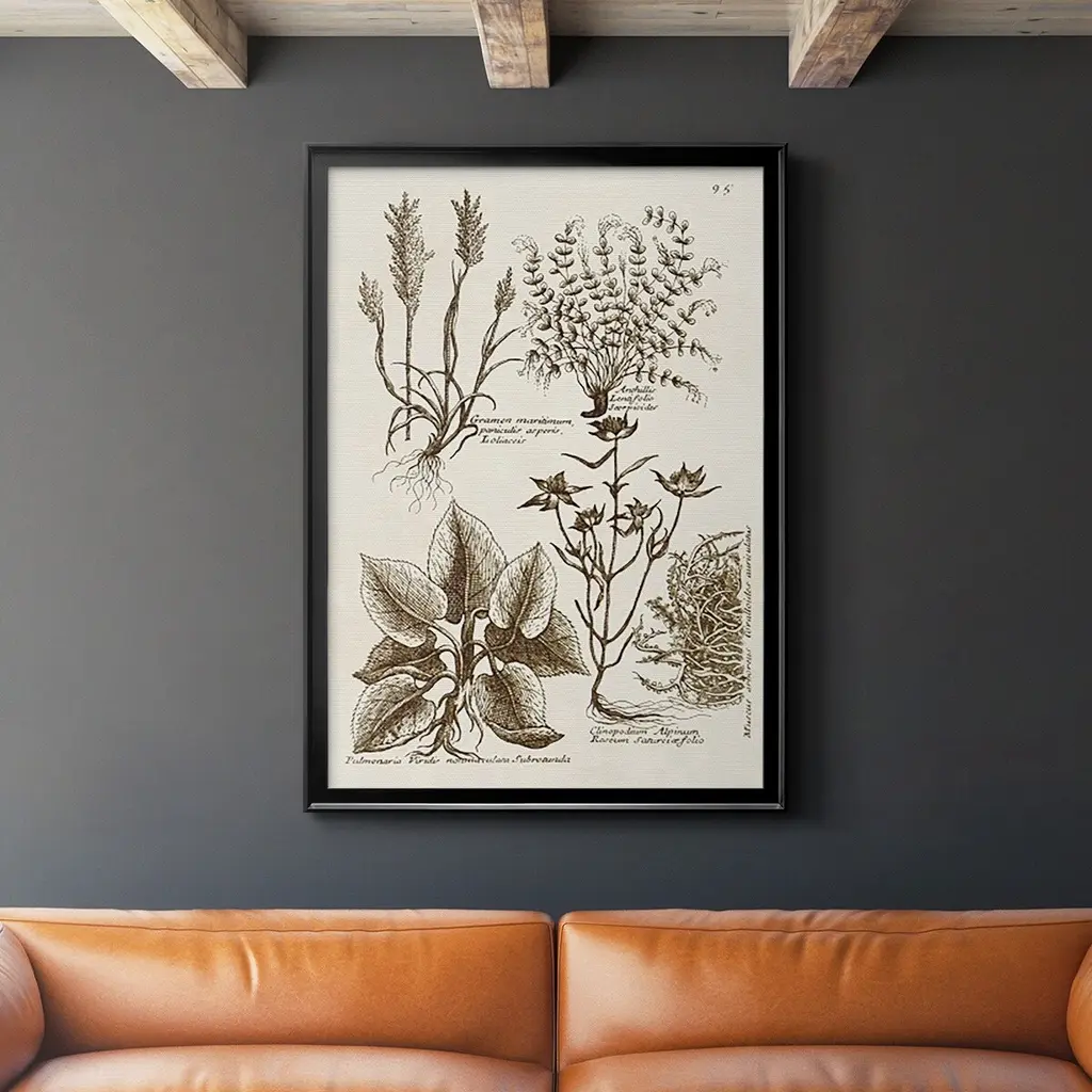 Sepia Botanical Journal VII Premium Framed Print - Ready to Hang A Premium Framed Print created to last. Framed in distressed wood and available in an array of sizes and colors Featuring a beveled a solid wood stretcher bar, each piece comes ready to hand 4 SIZES AVAILABLE 30.5''X42.5'' - Overall Size 26.5'X36.5'' - Overall Size 22.5''x30.5'' - Overall Size 18.5''x24.5'' - Overall Size Each piece is made to order. Each piece comes with hanging hardware. Made in the USA Ready to Hang