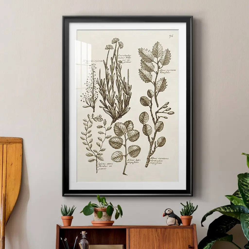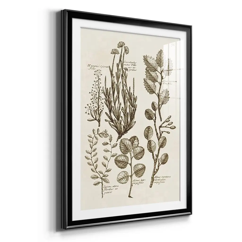 Sepia Botanical Journal VIII Premium Framed Print - Ready to Hang A Premium Framed Print created to last. Framed in distressed wood and available in an array of sizes and colors Featuring a beveled a solid wood stretcher bar, each piece comes ready to hand 4 SIZES AVAILABLE 30.5''X42.5'' - Overall Size 26.5'X36.5'' - Overall Size 22.5''x30.5'' - Overall Size 18.5''x24.5'' - Overall Size Each piece is made to order. Each piece comes with hanging hardware. Made in the USA Ready to Hang Giclee Paper Print Acrylic Glass Beveled Matt Board