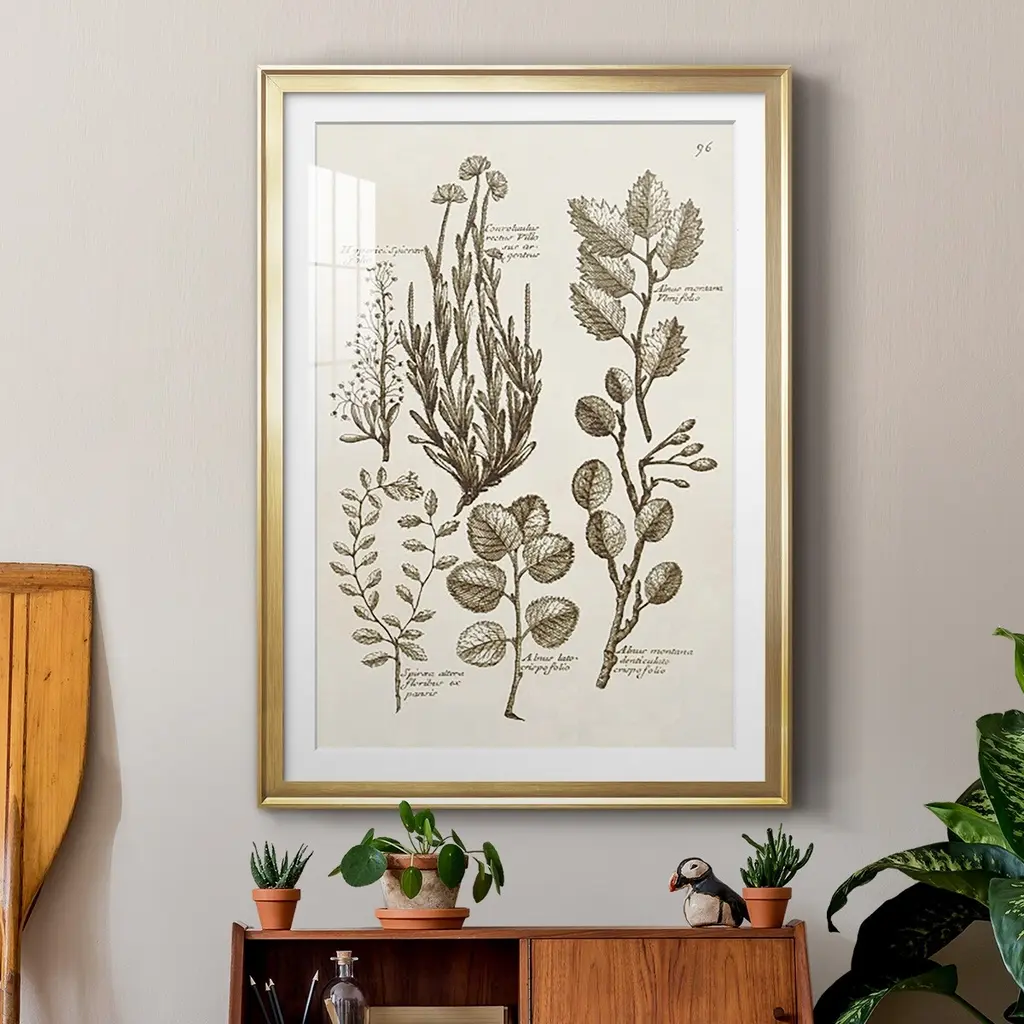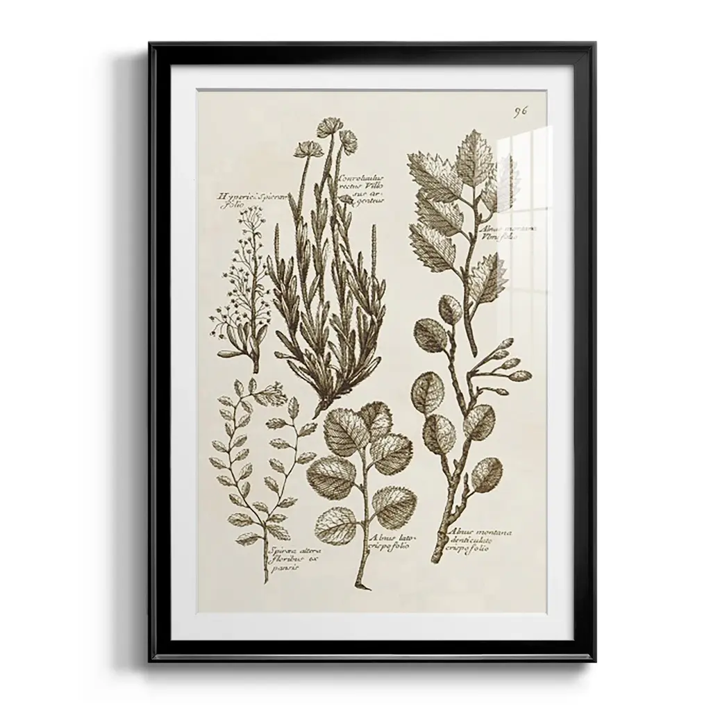 Sepia Botanical Journal VIII Premium Framed Print - Ready to Hang A Premium Framed Print created to last. Framed in distressed wood and available in an array of sizes and colors Featuring a beveled a solid wood stretcher bar, each piece comes ready to hand 4 SIZES AVAILABLE 30.5''X42.5'' - Overall Size 26.5'X36.5'' - Overall Size 22.5''x30.5'' - Overall Size 18.5''x24.5'' - Overall Size Each piece is made to order. Each piece comes with hanging hardware. Made in the USA Ready to Hang Giclee Paper Print Acrylic Glass Beveled Matt Board