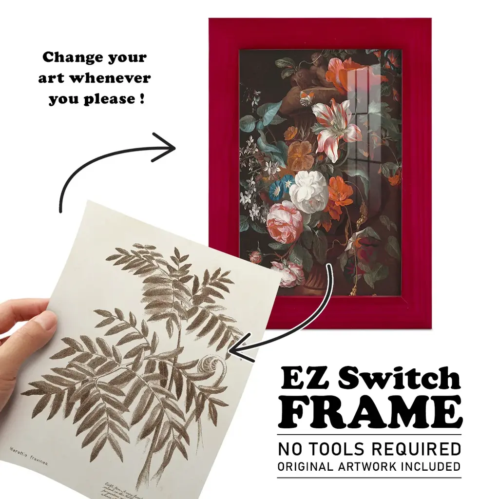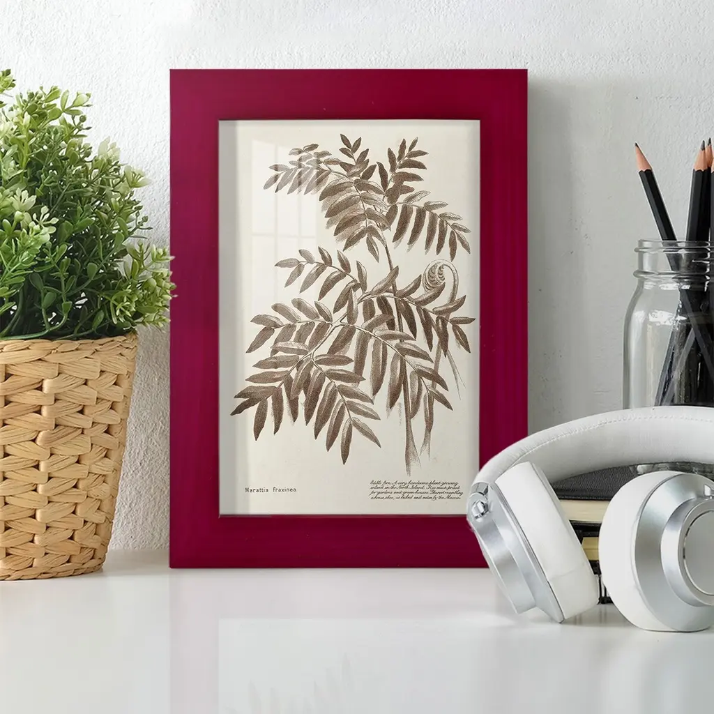 Sepia Fern Varieties II -EZ SWITCH Framed Print w/glass-Cherry Red A delightful, framed print. Featuring a solid wood frame with real wood glass. This premium print is giclee quality. In addition, every frame features a removable back and table top stand. This allows you to change your art in the future or to just stand the art on a table for a new look. We are sure you'll enjoy our new series of EZ SWITCH Framed Art. Solid Wood Frame Real Glass Removable / Replaceable Art Built in Tabletop Stand Sizes range from 4x6 up to 12x15 - buy just one or pair them up as sets as you see fit.