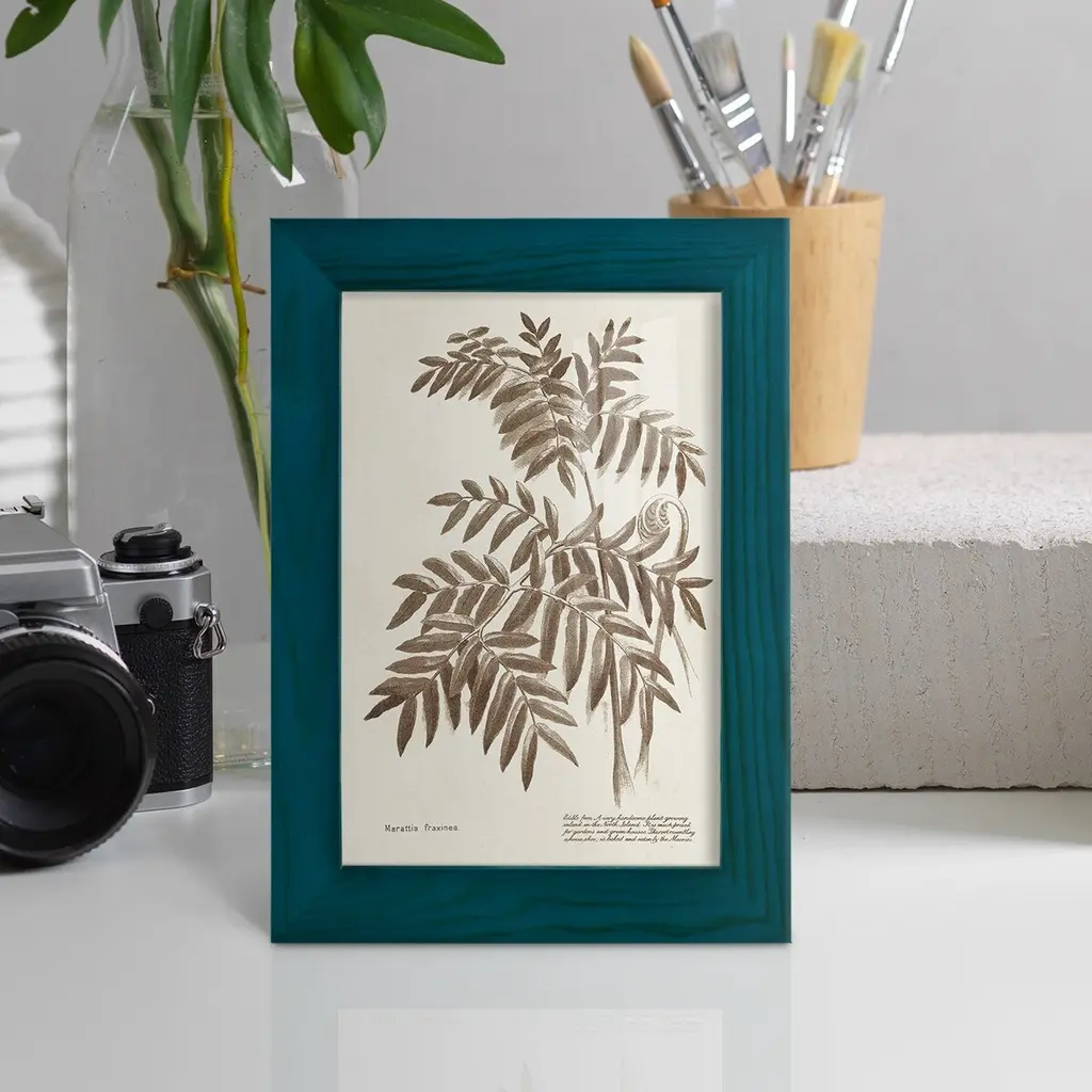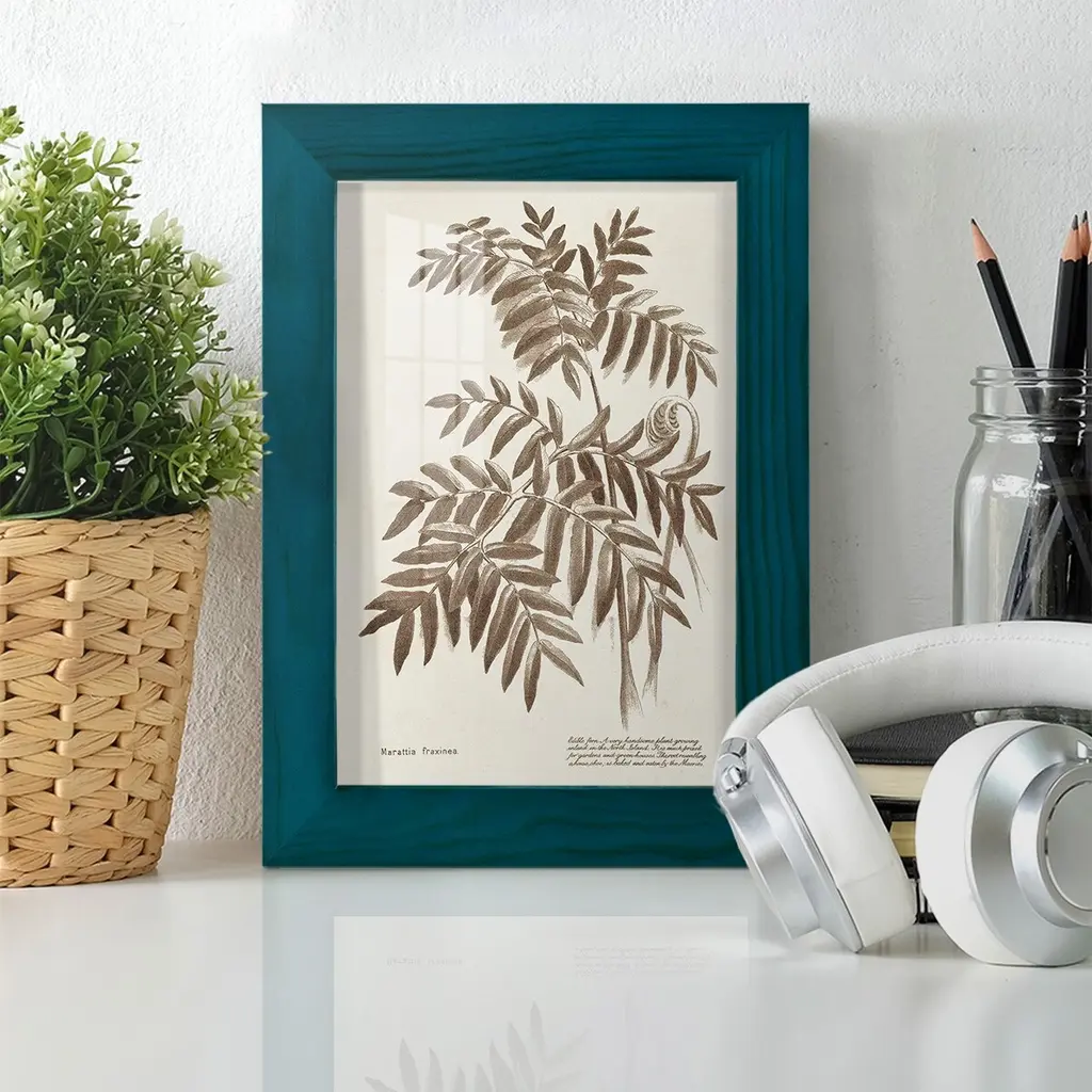 Sepia Fern Varieties Ii -Framed Print W/glass-Cherry Red - 12x15 - Blue