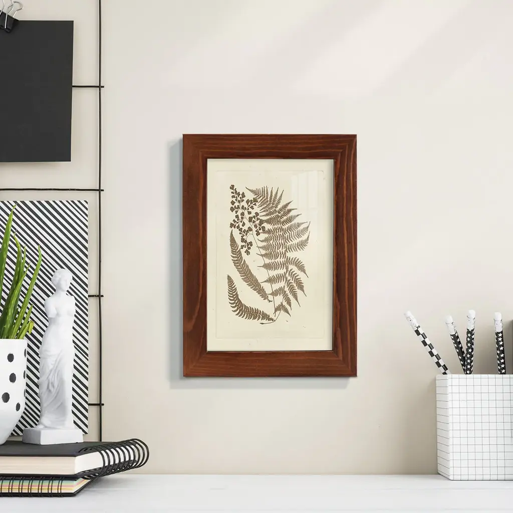 Sepia Ferns III -EZ SWITCH Framed Print w/glass-Cherry Red A delightful, framed print. Featuring a solid wood frame with real wood glass. This premium print is giclee quality. In addition, every frame features a removable back and table top stand. This allows you to change your art in the future or to just stand the art on a table for a new look. We are sure you'll enjoy our new series of EZ SWITCH Framed Art. Solid Wood Frame Real Glass Removable / Replaceable Art Built in Tabletop Stand Sizes range from 4x6 up to 12x15 - buy just one or pair them up as sets as you see fit.