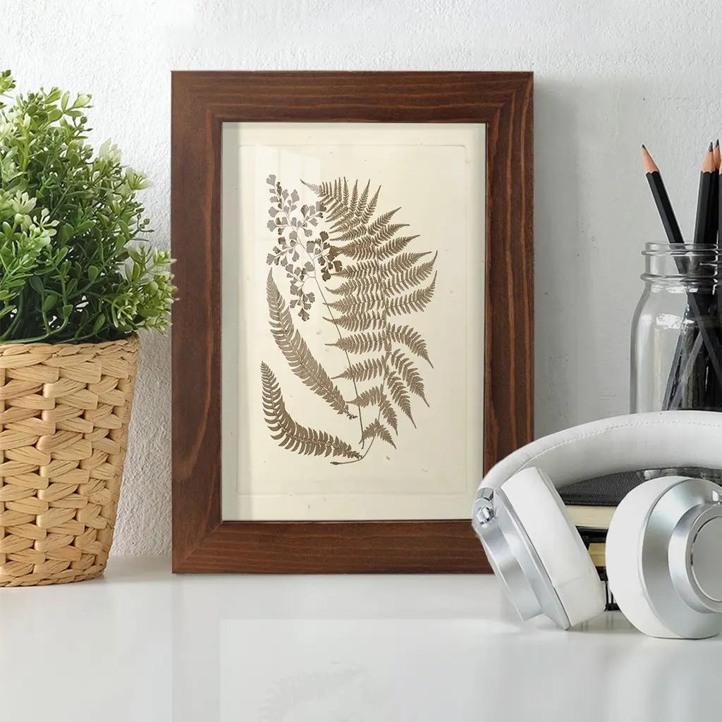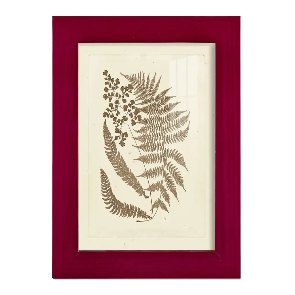 Sepia Ferns III -EZ SWITCH Framed Print w/glass-Cherry Red A delightful, framed print. Featuring a solid wood frame with real wood glass. This premium print is giclee quality. In addition, every frame features a removable back and table top stand. This allows you to change your art in the future or to just stand the art on a table for a new look. We are sure you'll enjoy our new series of EZ SWITCH Framed Art. Solid Wood Frame Real Glass Removable / Replaceable Art Built in Tabletop Stand Sizes range from 4x6 up to 12x15 - buy just one or pair them up as sets as you see fit.