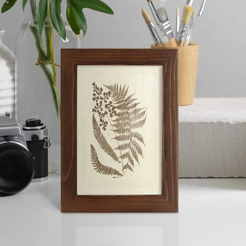 Sepia Ferns III -EZ SWITCH Framed Print w/glass-Cherry Red A delightful, framed print. Featuring a solid wood frame with real wood glass. This premium print is giclee quality. In addition, every frame features a removable back and table top stand. This allows you to change your art in the future or to just stand the art on a table for a new look. We are sure you'll enjoy our new series of EZ SWITCH Framed Art. Solid Wood Frame Real Glass Removable / Replaceable Art Built in Tabletop Stand Sizes range from 4x6 up to 12x15 - buy just one or pair them up as sets as you see fit.