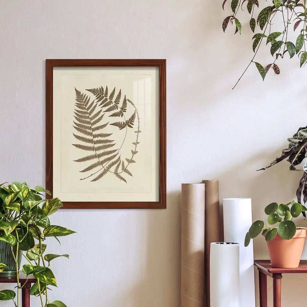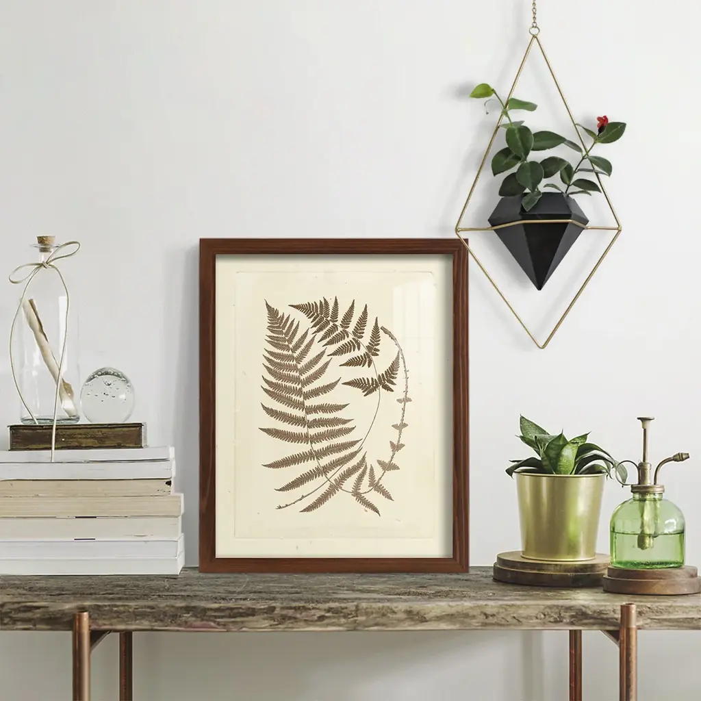 Sepia Ferns V -Framed Print W/glass-Cherry Red - 12x15 - Walnut