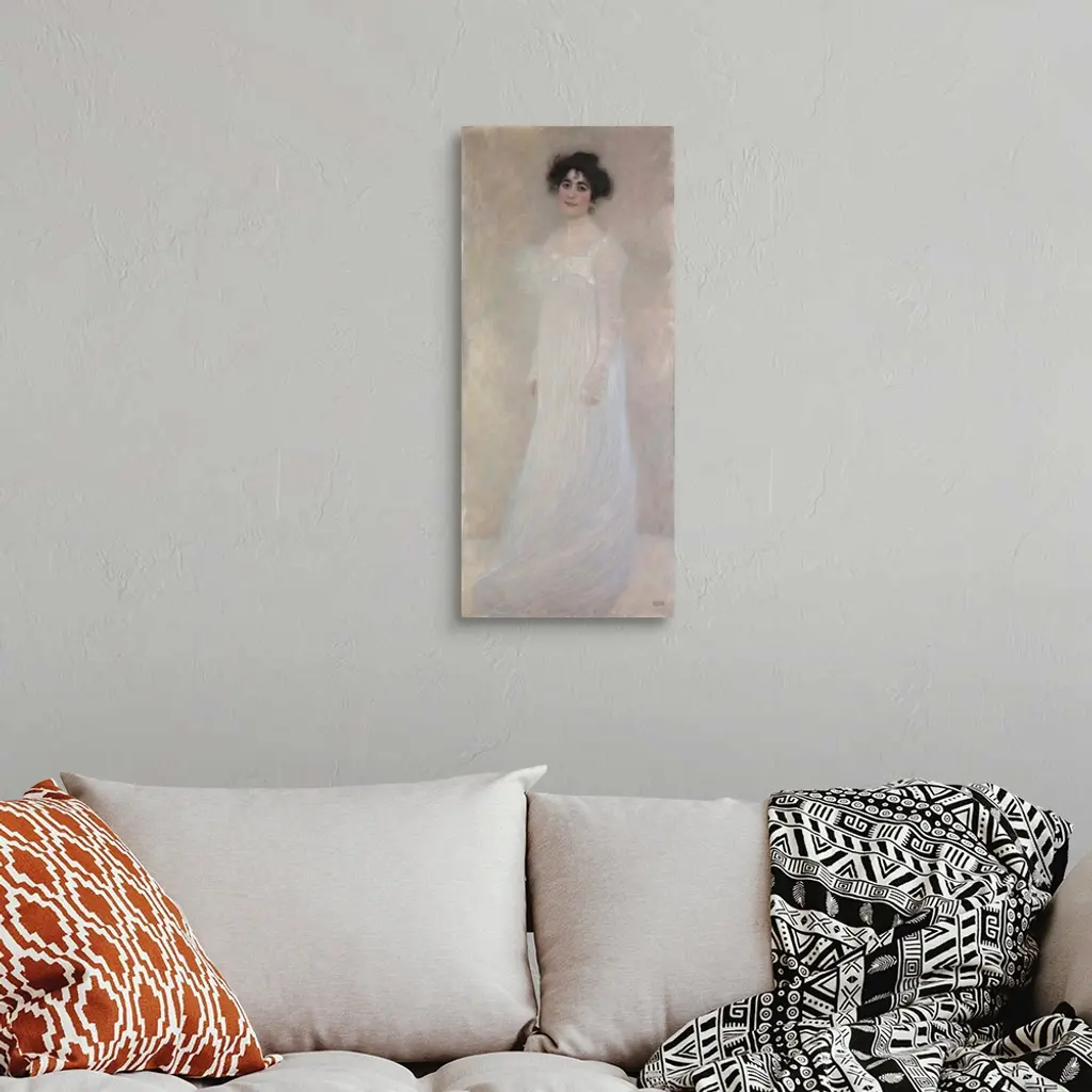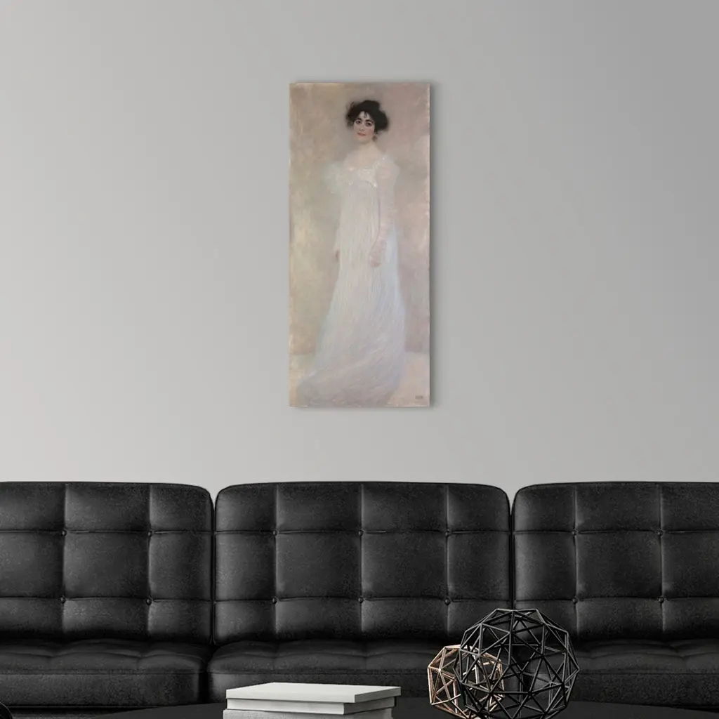 Beautiful and stylish, Serena Pulitzer Lederer was a star of turn-of-the-century Viennese society. For this portrait, commissioned by her husband, the industrialist August Lederer, Klimt employed soft, sinuous brushstrokes to present Serena as an apparition in white. An upright flower, long-stemmed like a black tulip, enthused one critic when the painting was shown in 1901 at the tenth exhibition of the Vienna Secession-a group founded by Klimt and other artists four years earlier, with the aim of putting the city at the forefront of the international art world. The Lederers subsequently formed the finest collection of Klimt's work in private hands.