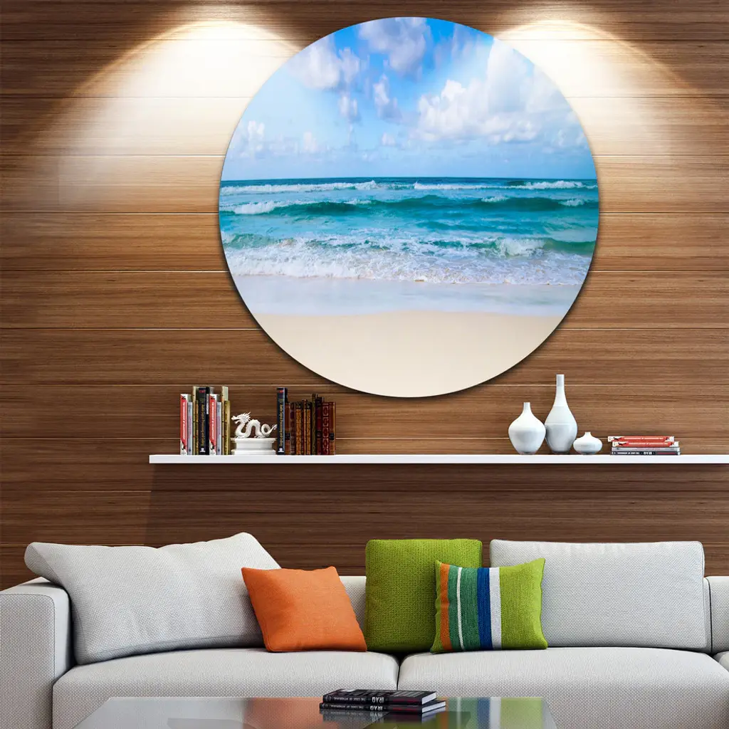 Serene Blue Tropical Beach, Seashore Round Wall Art, 23"