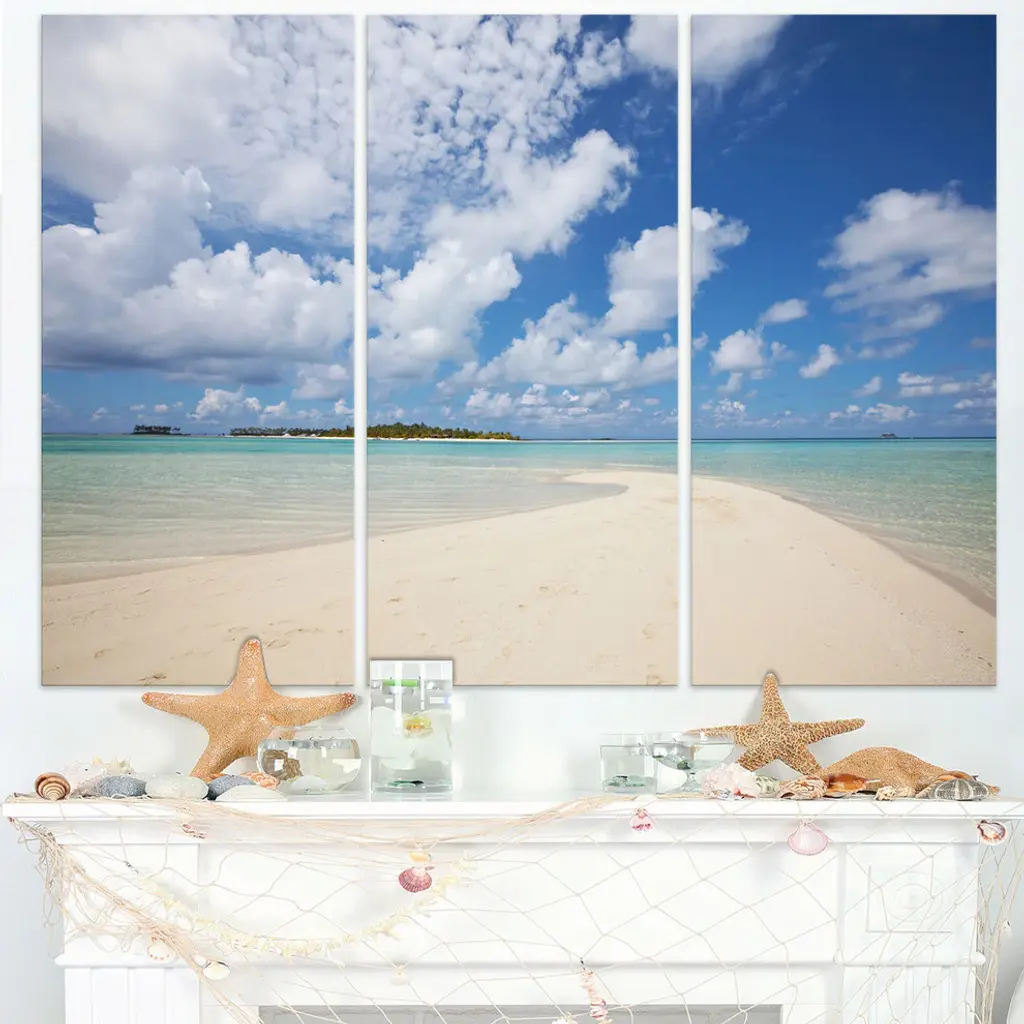 Serene Maldives Beach Under Clouds - Seascape Metal Art - 36x28 - 3 Panels
