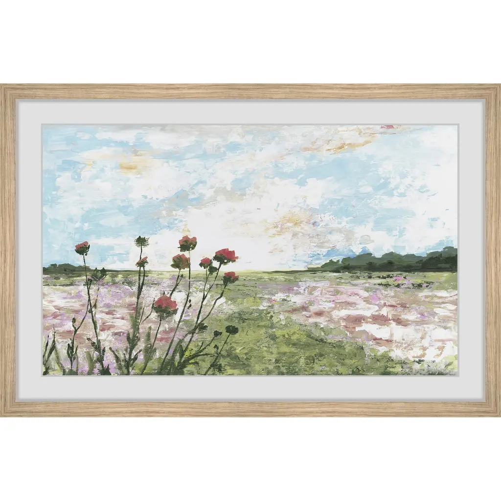 Turn your home into a carefully curated art gallery with this acrylic painting print that features an open field with stunning flowers. Proudly printed in the USA, this piece is printed on high quality archive paper and professionally hand-framed. With wall-mounting hooks included, this artful accent is ready to hang up as soon as it reaches your front door. • Top quality Giclee print on high resolution Archive Paper • Professionally framed and mounted on acid free archive matte • High quality durable non-warping frame • Finished under shatter resistant plexiglass • Arrives ready to hang • Includes a certificate of authenticity • Printed in the USA