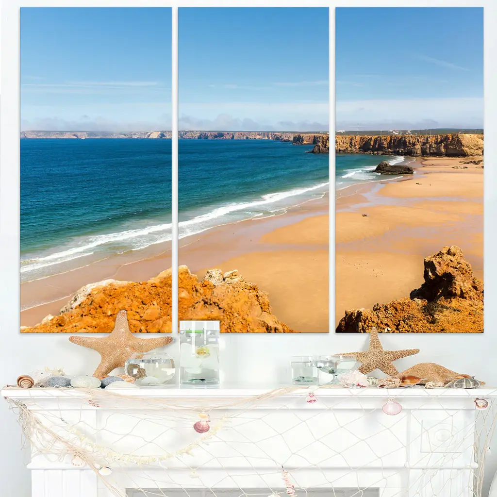 "Serene Rocky Bay Portugal" Metal Wall Art, 3 Panels, 36"x28"