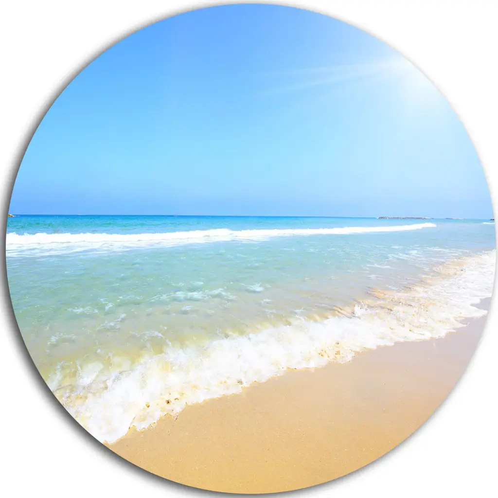 Serene Seascape With Bright Sun, Modern Beach Disc Metal Artwork, 36"