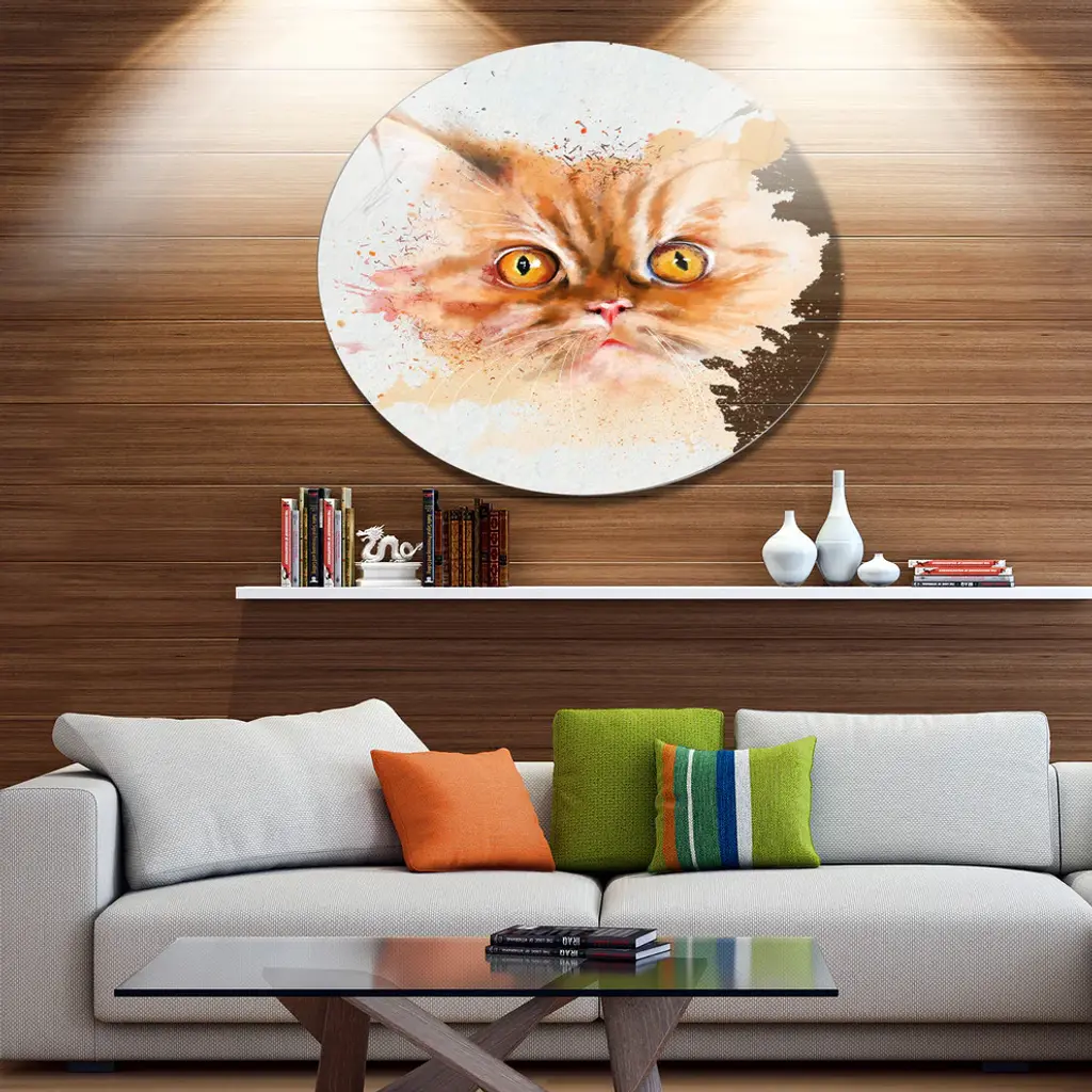 Bring Contemporary Abstraction to your home with this large Circle Metal wall art. This Serious Cat Face Watercolor Sketch Metal Artwork makes it the focal point of any room or office. - White Gloss Coating ensures colors are extra vibrant with light reflection.- Aluminum grade Sheet Metal with 1 inch mounting frame on the back giving the illusion that the artwork is floating on the wall..- Mounting Brackets are included along with instructions.- High Quality Digital images are created directly into a glossy aluminum panel producing a stunning and captivating print into the glossy finish of the metal.- Water, Fire and Scratch resistant HD Aluminum panels.- Looks better than any photo paper and guaranteed to last at least 20 years- Easy to clean with a microfiber cloth. Colors are far superior to regular Canvas Art. - Easy to Hang