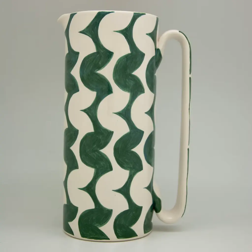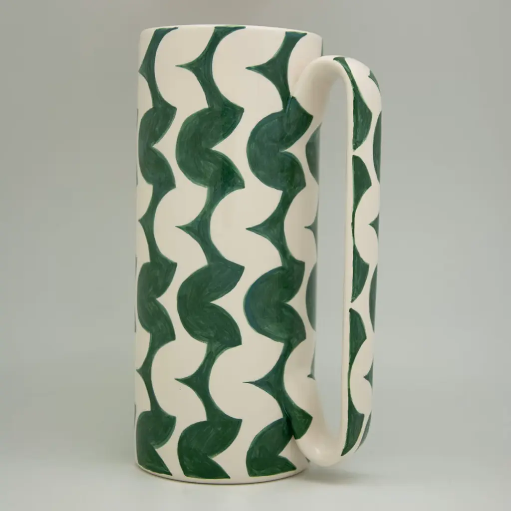 A glimpse of the playful sketchbook of a young Carlo Guazzo. This Serlio 'pattern' collection is inspired by the architect's notebook drawings. A unique ceramic carafe fully hand-painted where the pattern wraps around the entire vase finished with a shiny glaze that highlights the artisanal details. When missing some ideas, he used to activate his creativity by playing with portions of circles, resulting in vivid patterns.