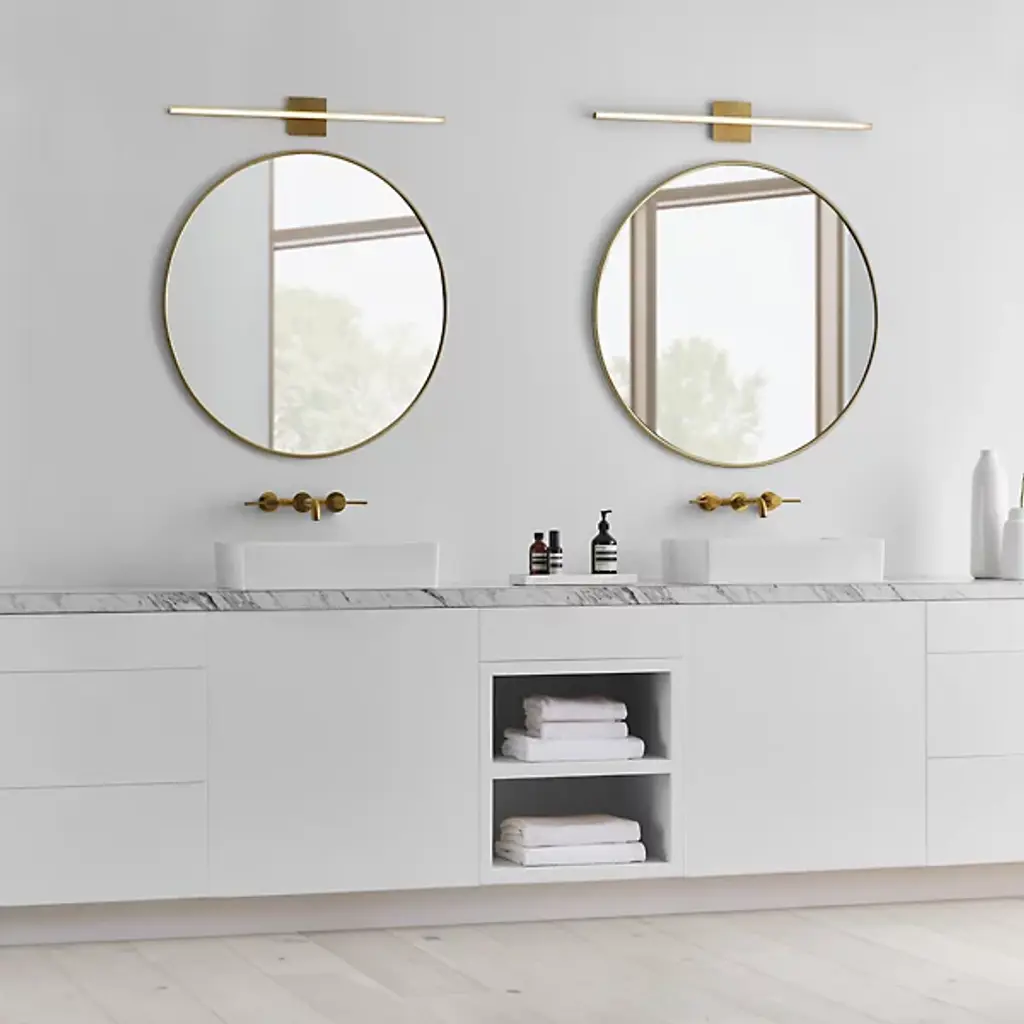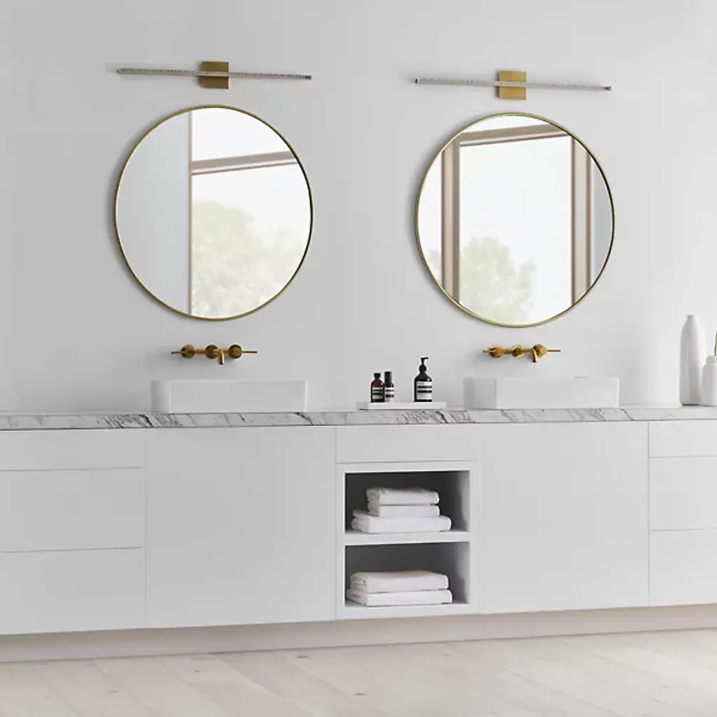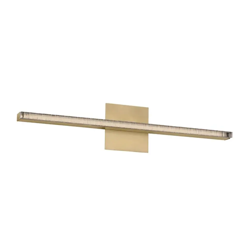 Bring broad appeal and restrained radiance to interiors with the Serre LED Bath Vanity Light from Visual Comfort Modern. A refined contemporary piece designed by Mick De Giulio, it extends a slim metal bar housing across a subdued square wall mount, setting damp-rated lamping beneath a translucent glass diffuser to give the light go-anywhere flair.
