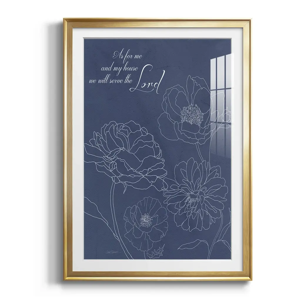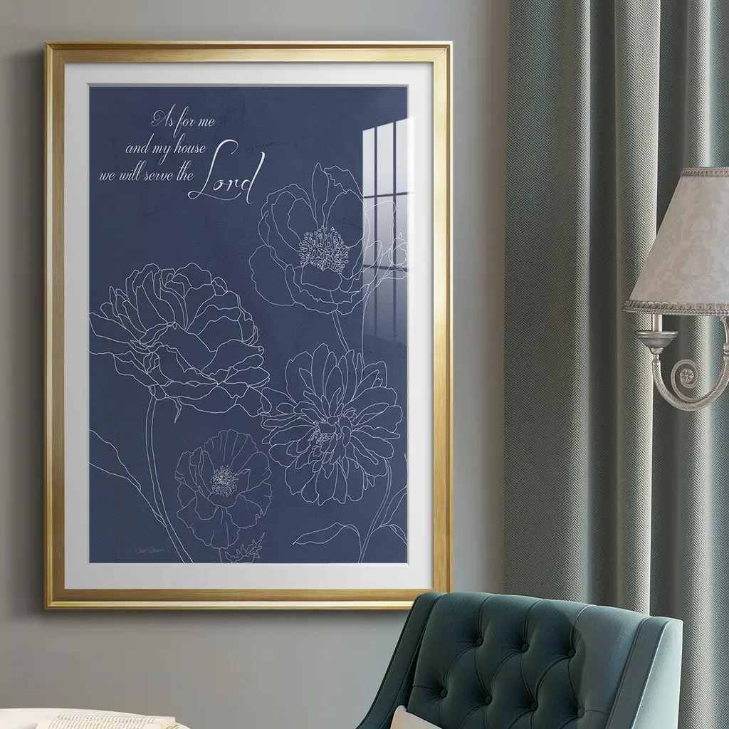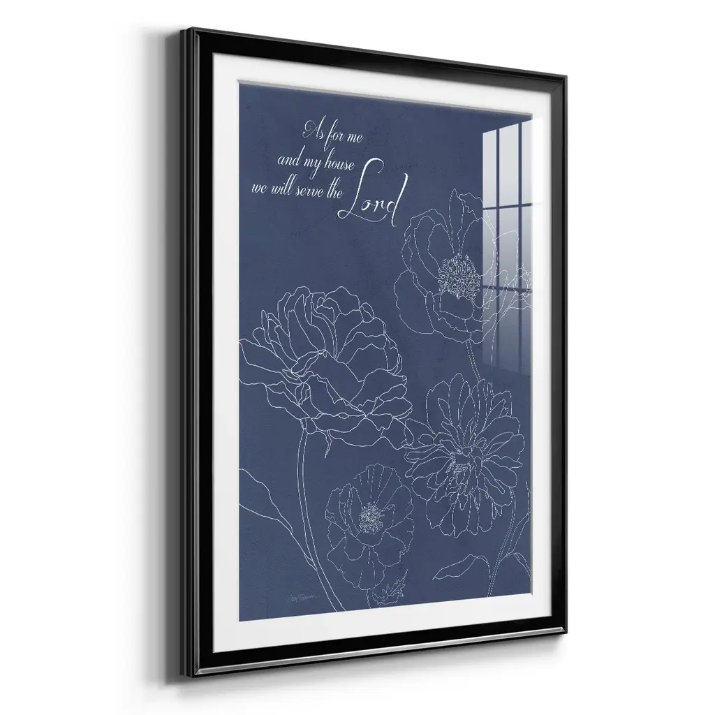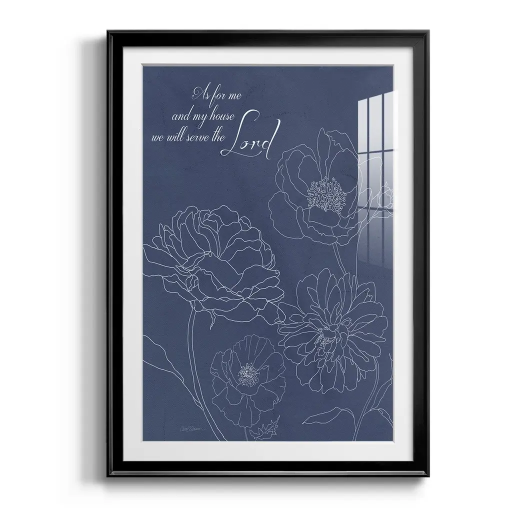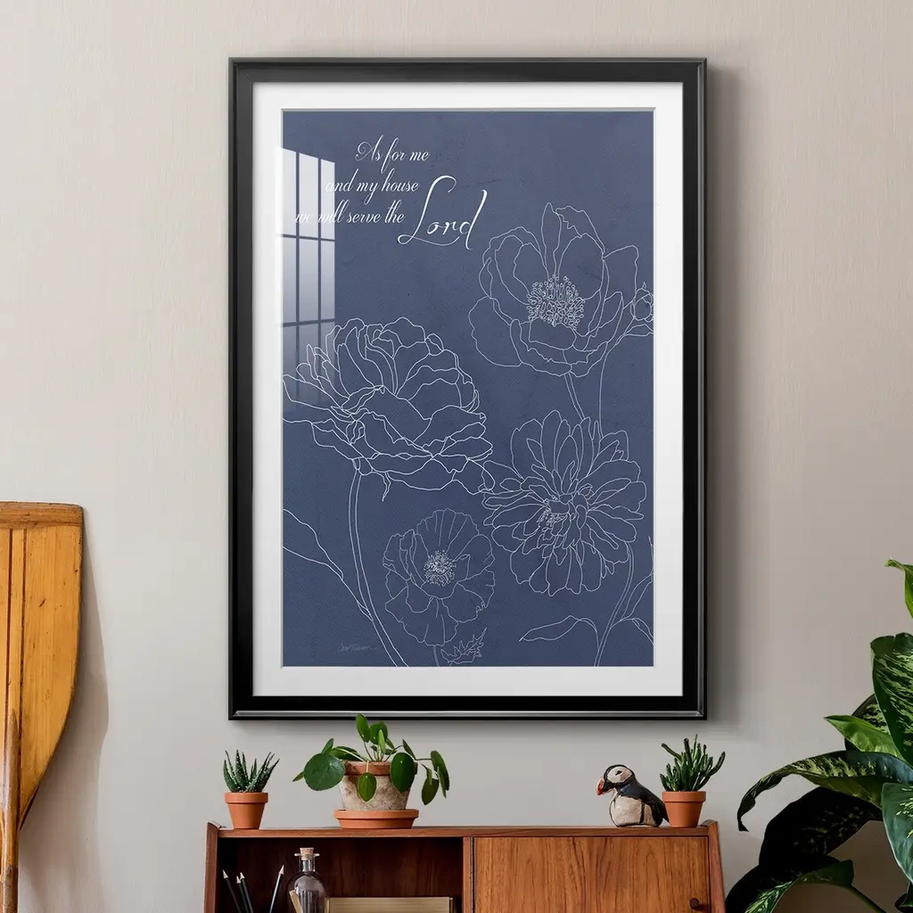 Serve the Lord Floral Sketch Premium Framed Print - Ready to Hang A Premium Framed Print created to last. Framed in distressed wood and available in an array of sizes and colors Featuring a beveled a solid wood stretcher bar, each piece comes ready to hand 4 SIZES AVAILABLE 30.5''X42.5'' - Overall Size 26.5'X36.5'' - Overall Size 22.5''x30.5'' - Overall Size 18.5''x24.5'' - Overall Size Each piece is made to order. Each piece comes with hanging hardware. Made in the USA Ready to Hang Giclee Paper Print Acrylic Glass Beveled Matt Board