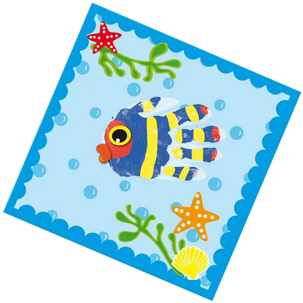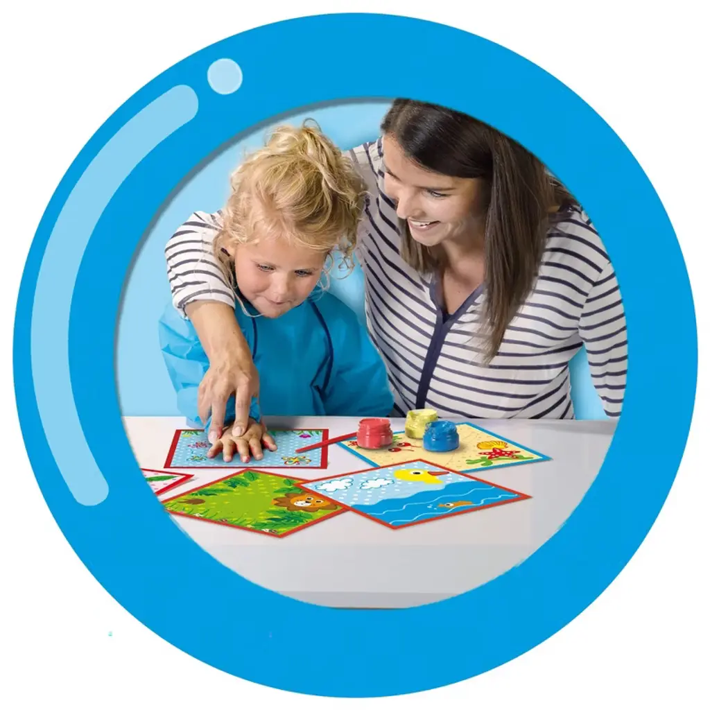 SES CREATIVE MY FIRST WORK OF ART - FUN PAINTING SET FOR TODDLERS. SES My First Work of Art is the perfect way for parents to introduce their little ones to the joy of painting. This set includes cheerful printed cards that show exactly where to place a hand or foot, making it easy and fun for young children. Just spread paint on your child's hand, press it onto the card, and add the finishing touches with the extra printed details. The result is always a delightful masterpiece! The set comes with three vibrant finger paint colors, 11 printed cards, a brush, and extra printed details. Designed for children aged 1 year and older, this set is a wonderful activity for parents to enjoy with their young ones. The paints are non-toxic, hypoallergenic, and gluten-free, ensuring a safe and fun experience for all. You can have peace of mind knowing the paint is completely safe for your child's delicate skin. With no small parts, the set is completely safe for young children, and it's an excellent way to develop motor skills and creativity. Your child will love making their first work of art, and you'll cherish the memories of creating together. Get ready for some colorful, creative fun with SES My First Work of Art. It's the ideal way to introduce your child to painting and create lasting memories together. Grab your set and start making beautiful art today!