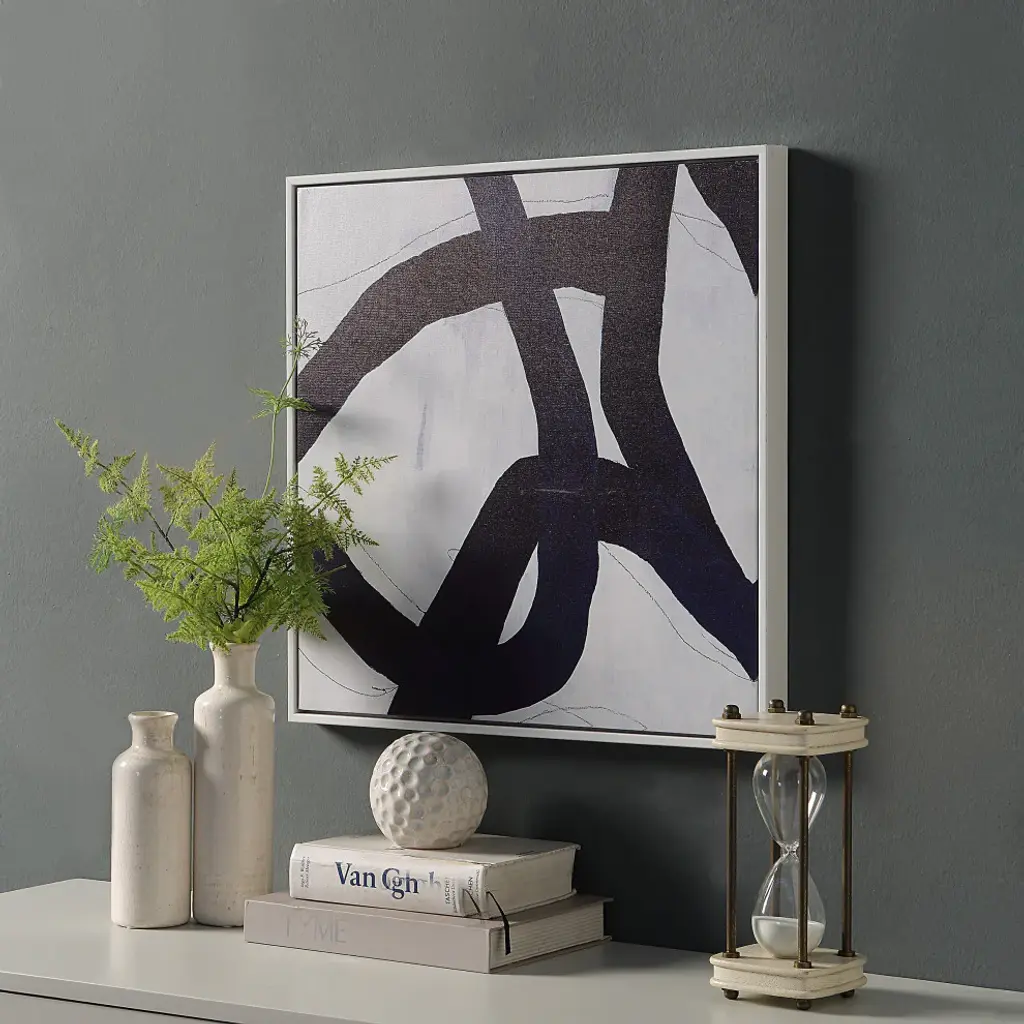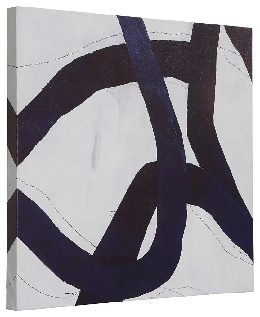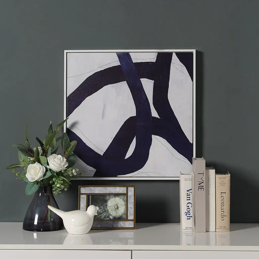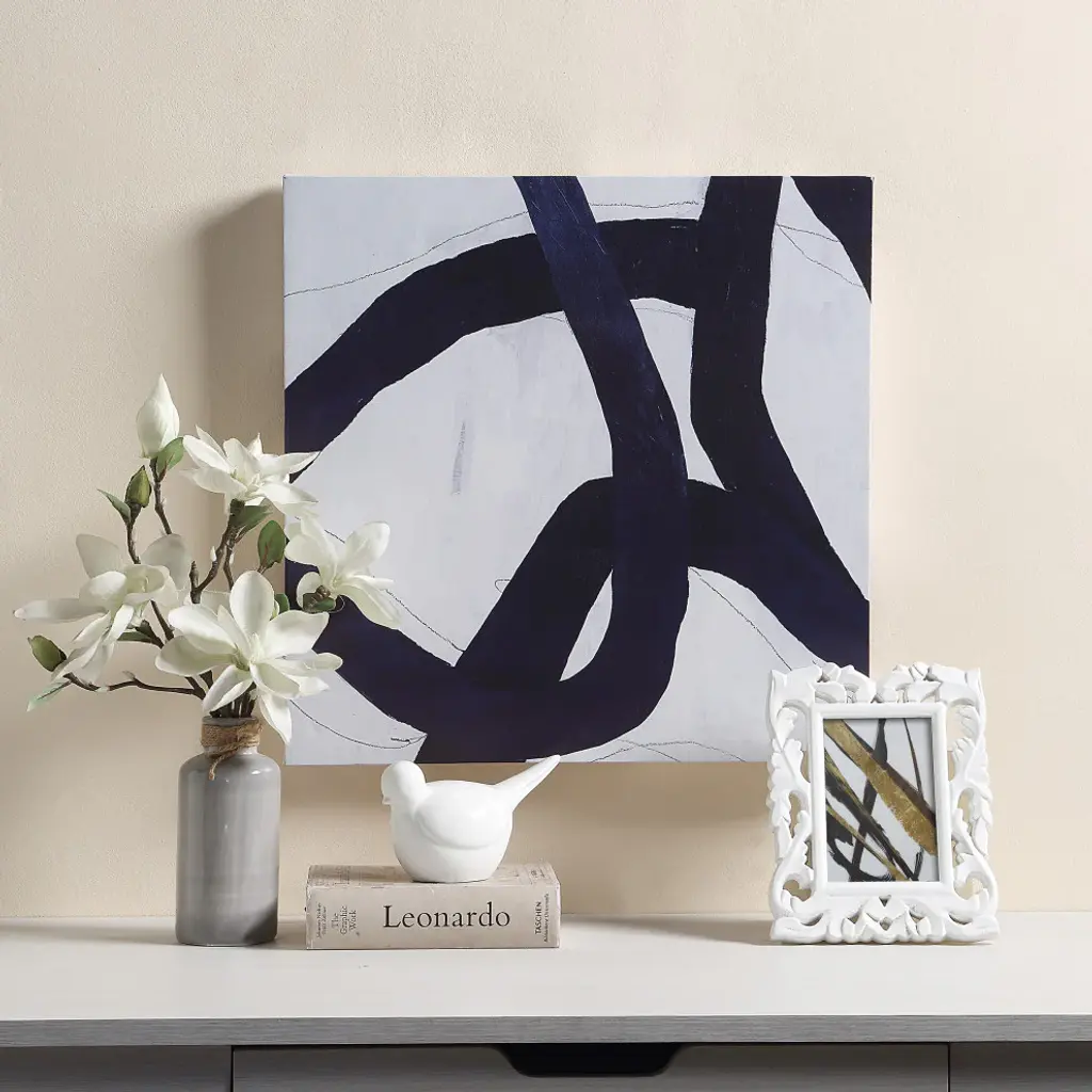 Our blue and white abstract art adds distinct elegance and chic style. Try adding this striking art to your home to instantly elevate your space. Showcasing an abstract circling motif, These lovely designs are the perfect finishing touches for contemporary spaces. Try hanging these pieces together above your living room mantle for a beautiful focal point.