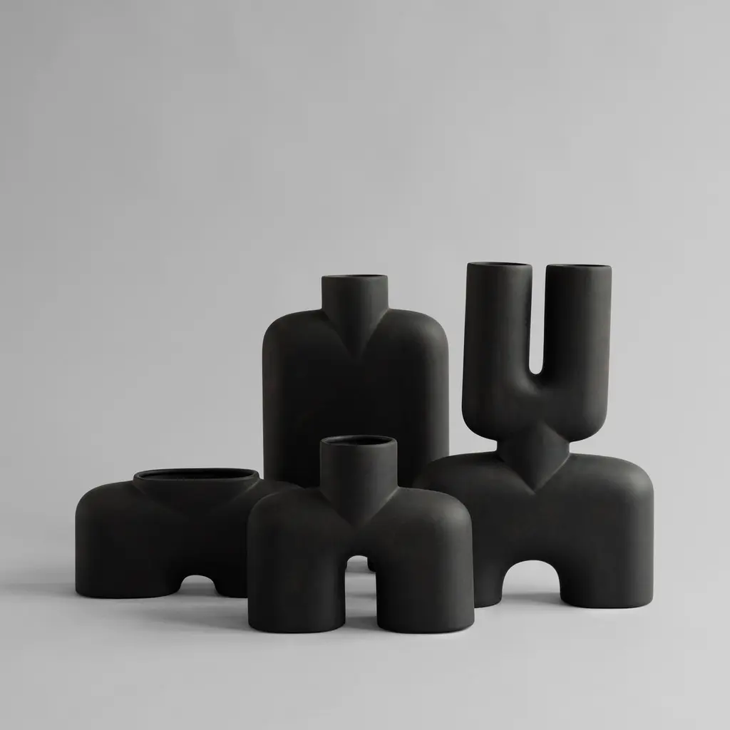 A Set of 2 Coffee Cobra Uno Medio by 101 CopenhagenDesigned by Kristian Sofus Hansen & Tommy HyldahlDimensions: L30 / W10 / 25 CMMaterials: CeramicA tribute to the Cobra Arts Movement of the 1960s, the collection is the epitome of quirky vases that will add joy to any interior setting. Think whimsical, soft and organic shapes unmistakably reminiscent of human silhouettes and curves. True to the Cobra artists way of working, the series takes its starting point in naive hand sketches leading to bodily silhouettes. As it is a hand glazed natural product, the colours may vary slightly and while it is not 100% waterproof, a bag for fresh flowers is included. 101 Copenhagen is a Danish design brand founded in 2017. With a vision to honor exquisite quality and craftsmanship, the collection encompasses furniture, lighting and accessories in a timeless, yet modern design. With a true passion for materials and refined textures, organic shapes and colours, 101 Copenhagen presents the epitome of classics and must-have novelties for Scandinavian and international interior connoisseurs alike.