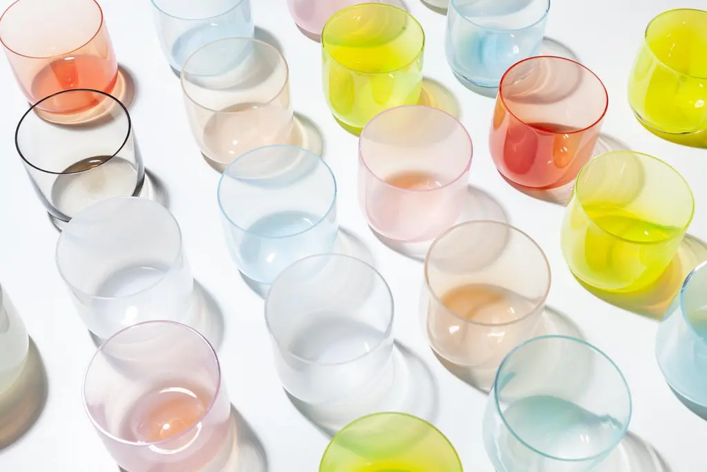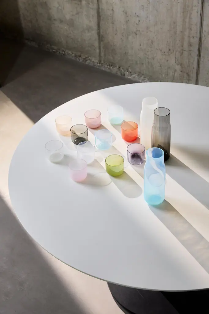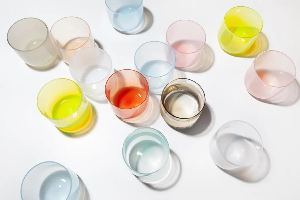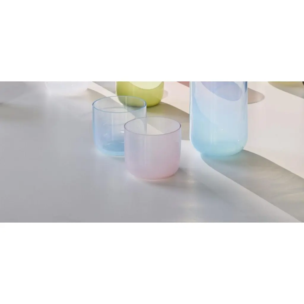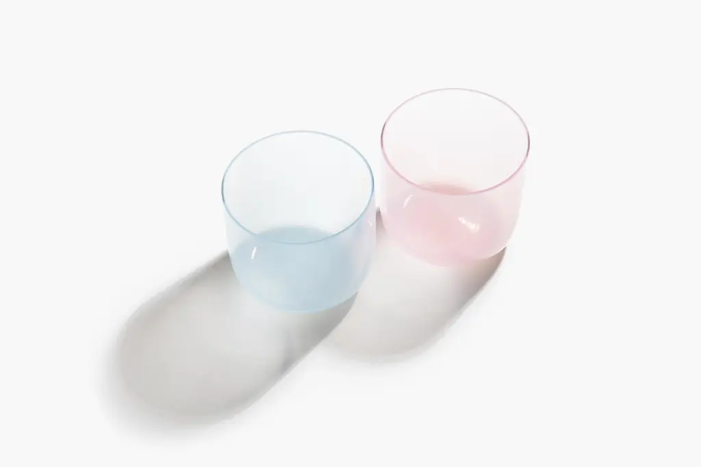 Set of 2 Glasses by Dechem StudioDimensions: ⌀ 7.5 x H 7 cmMaterials: Glass.Set of 2 drinking glasses: Choose your favourite colour mix and enhance your drinking experience.The little imperfections and bubbles in Your purchase are the proof of its hand-made origin.As the glass is not heat-resistant, it is not suitable for hot beverages or candles. Dishwasher safe up to 60°. To avoid scratches, don’t wipe with any harsh cloth.Lead-free glass. We are DECHEM.We are Michaela and Jakub, designers and storytellers in Bohemian glass. Our work is based on contemporary design combined with a mastery of production and a healthy respect for old Central European Craft and traditions.We design, produce and sell our collections of lights and decorative glass products. We produce unique light fixtures made from a combination of mouth-blown glass and handcrafted brass. Our glamorous chandeliers light up any space with a playful yet elegant appearance.A significant component of our work is blowing glass into a colour gradient. The wide range of fresh gradient colours is a distinctive feature of the Bandaska vase from our collection. It draws inspiration from traditional milk containers, well-known in Czech village households, and their elegant lines are now coming into modern homes in the form of our glass vases and lights.In addition to our normal production, we love to devise bespoke luminous objects for interiors. They arise from experimenting with unconventional materials and unusual combinations.Along with our own work, we like to be part of special collaborations and exhibitions. We have collaborated with renowned galleries and institutions, and curated and exhibited projects in Milano, London, Frankfurt, Istanbul and several other cities around the world.All of our creations are manufactured with care in Czech workshops using unique methods, including hand-blowing, snapping, cutting, grinding, firing, engraving and glass painting.We founded DECHEM studio in Prague in 2012 as partners in both work and life after years of studying glass Craft and design, and we have grown it into a renowned and award-winning design studio.