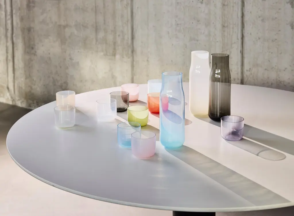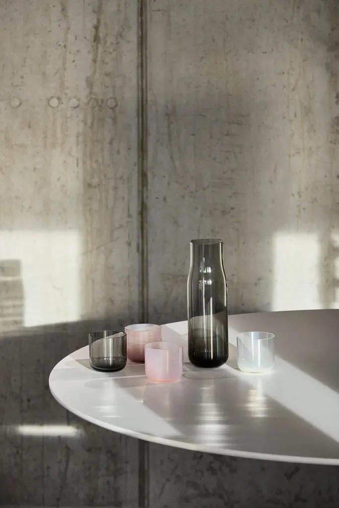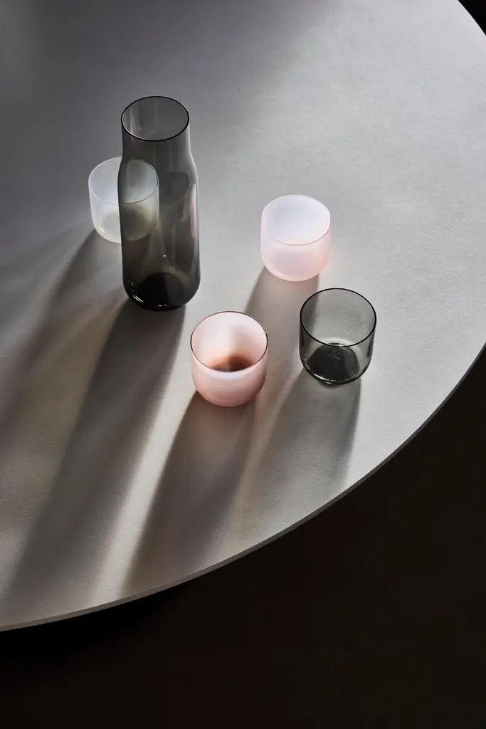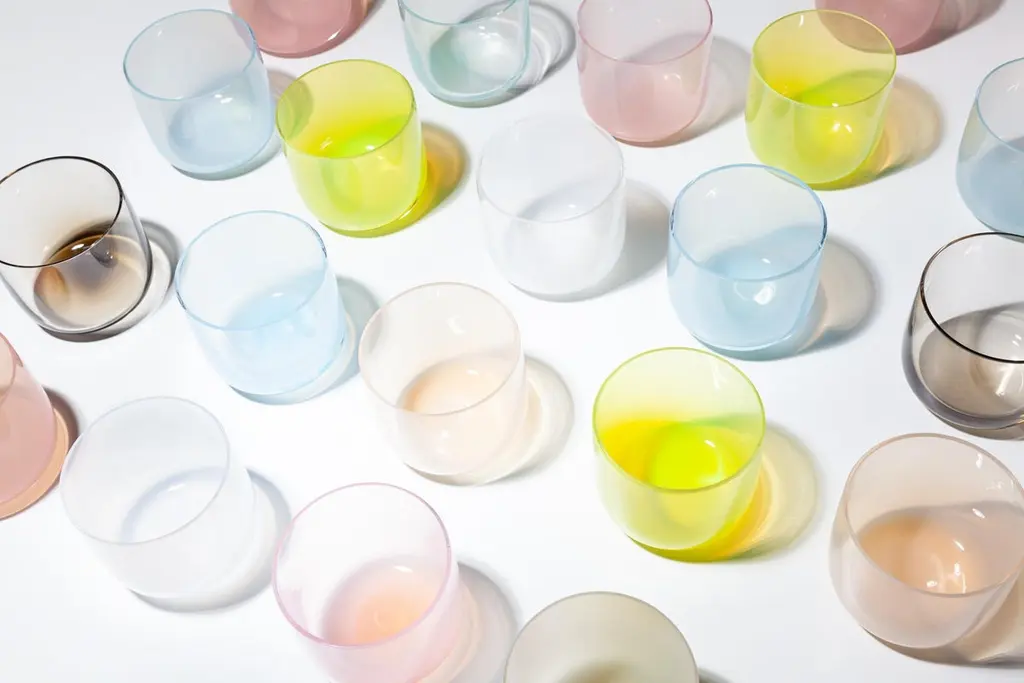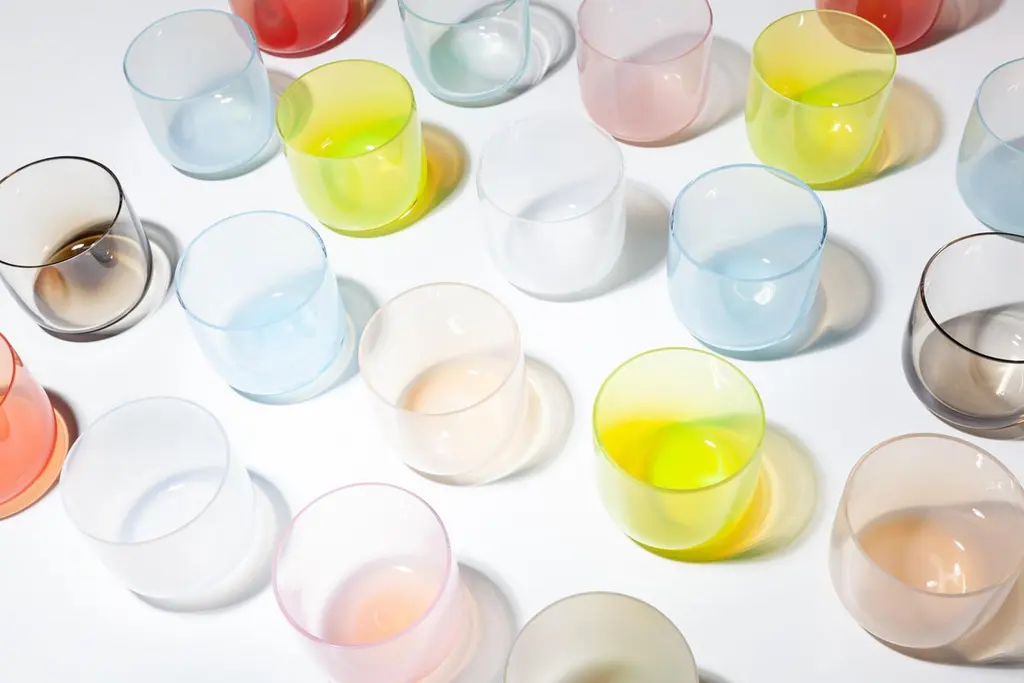 Set of 2 Glasses by Dechem StudioDimensions: ⌀ 7.5 x H 7 cmMaterials: Glass.Set of 2 drinking glasses: Choose your favourite colour mix and enhance your drinking experience.The little imperfections and bubbles in Your purchase are the proof of its hand-made origin.As the glass is not heat-resistant, it is not suitable for hot beverages or candles. Dishwasher safe up to 60°. To avoid scratches, don’t wipe with any harsh cloth.Lead-free glass. We are DECHEM.We are Michaela and Jakub, designers and storytellers in Bohemian glass. Our work is based on contemporary design combined with a mastery of production and a healthy respect for old Central European Craft and traditions.We design, produce and sell our collections of lights and decorative glass products. We produce unique light fixtures made from a combination of mouth-blown glass and handcrafted brass. Our glamorous chandeliers light up any space with a playful yet elegant appearance.A significant component of our work is blowing glass into a colour gradient. The wide range of fresh gradient colours is a distinctive feature of the Bandaska vase from our collection. It draws inspiration from traditional milk containers, well-known in Czech village households, and their elegant lines are now coming into modern homes in the form of our glass vases and lights.In addition to our normal production, we love to devise bespoke luminous objects for interiors. They arise from experimenting with unconventional materials and unusual combinations.Along with our own work, we like to be part of special collaborations and exhibitions. We have collaborated with renowned galleries and institutions, and curated and exhibited projects in Milano, London, Frankfurt, Istanbul and several other cities around the world.All of our creations are manufactured with care in Czech workshops using unique methods, including hand-blowing, snapping, cutting, grinding, firing, engraving and glass painting.We founded DECHEM studio in Prague in 2012 as partners in both work and life after years of studying glass Craft and design, and we have grown it into a renowned and award-winning design studio.