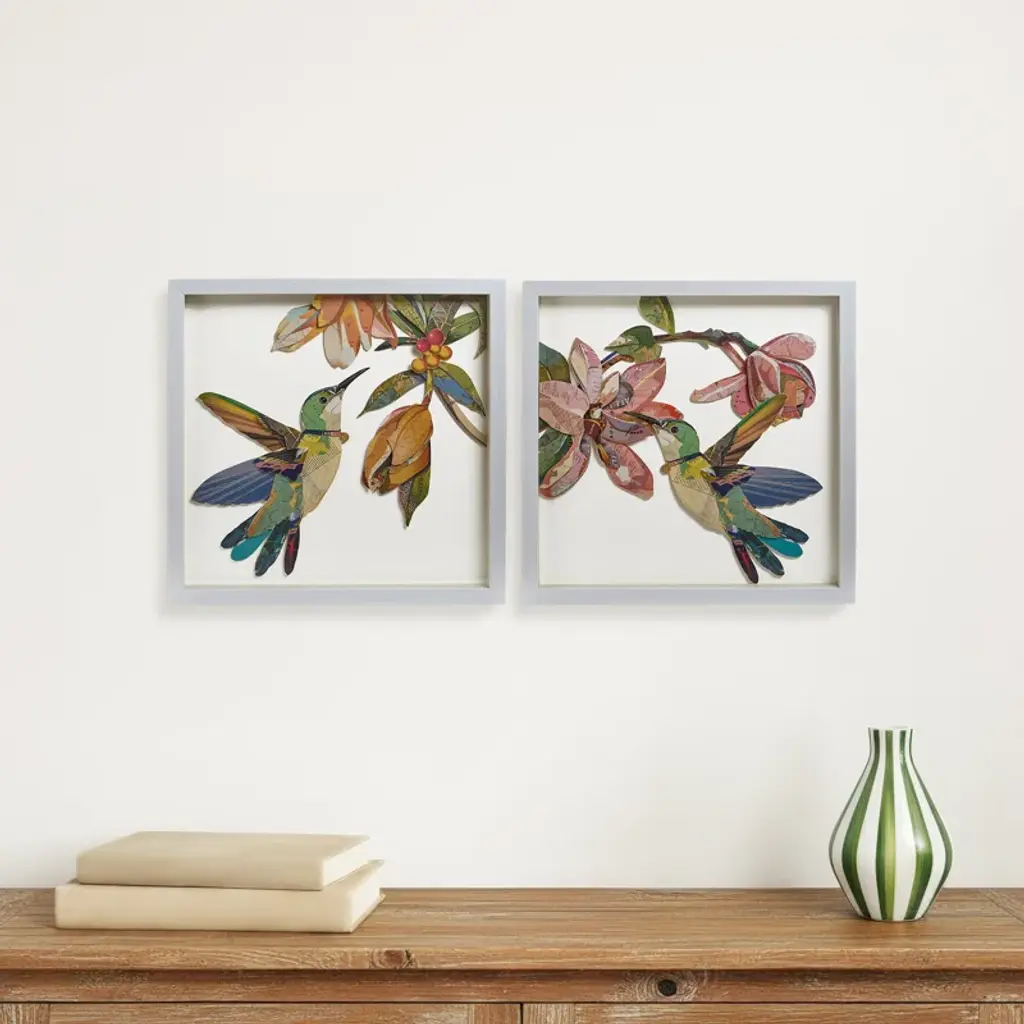 Set Of 2 Humming Birds Paper Collage Wall Art