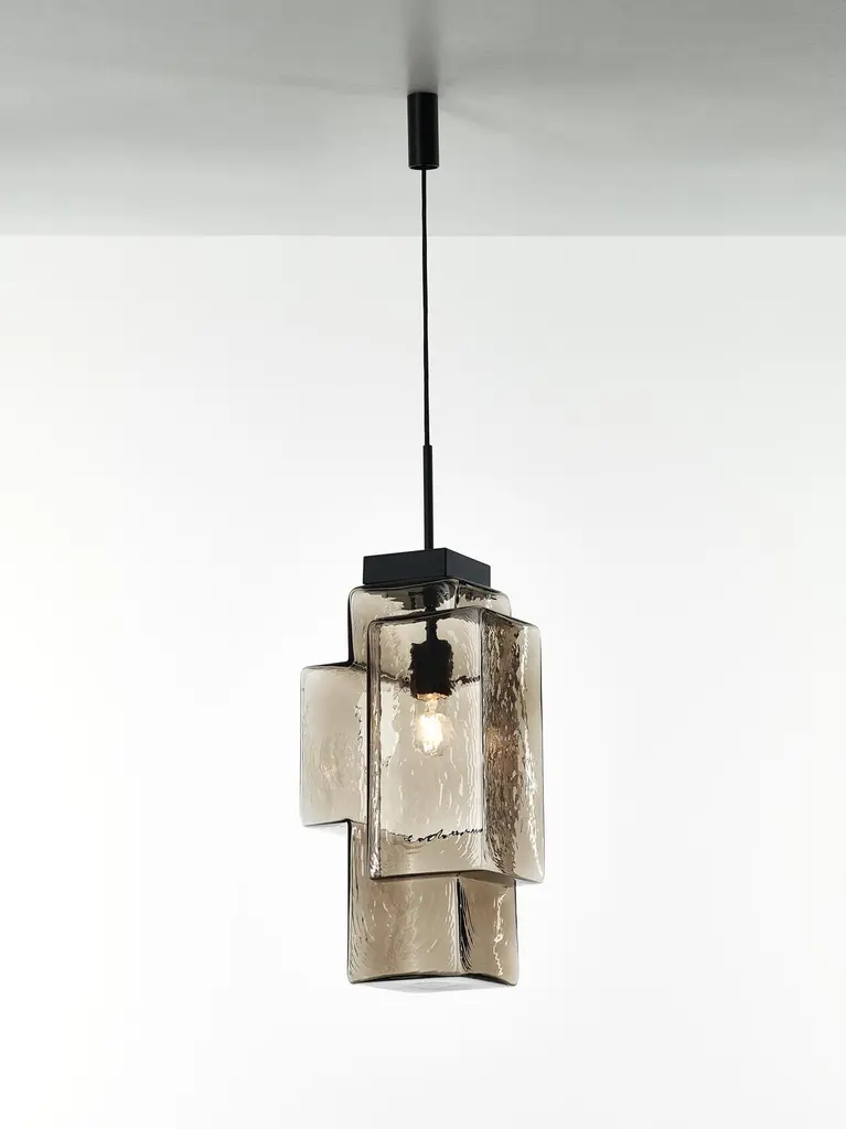 Set Of 2 Smoke Grey Tetris Pendant Light By Dechem Studio