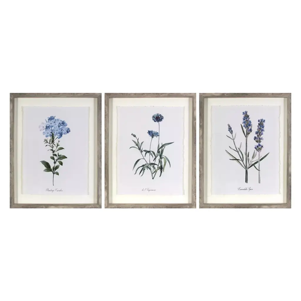 Grace your walls with the nature-inspired style of this Framed Vintage Botanical Wall Art Set from Threshold™. This collection of three blue and green flower prints features frayed edges and simple wooden frames for a simple yet stylish look you'll love. These 16 inch x 20 inch framed prints can easily be hung in a vertical or horizontal row, or in three separate locations to suit your existing decor.Threshold™: Quality & Design / Casual classics for house and home.